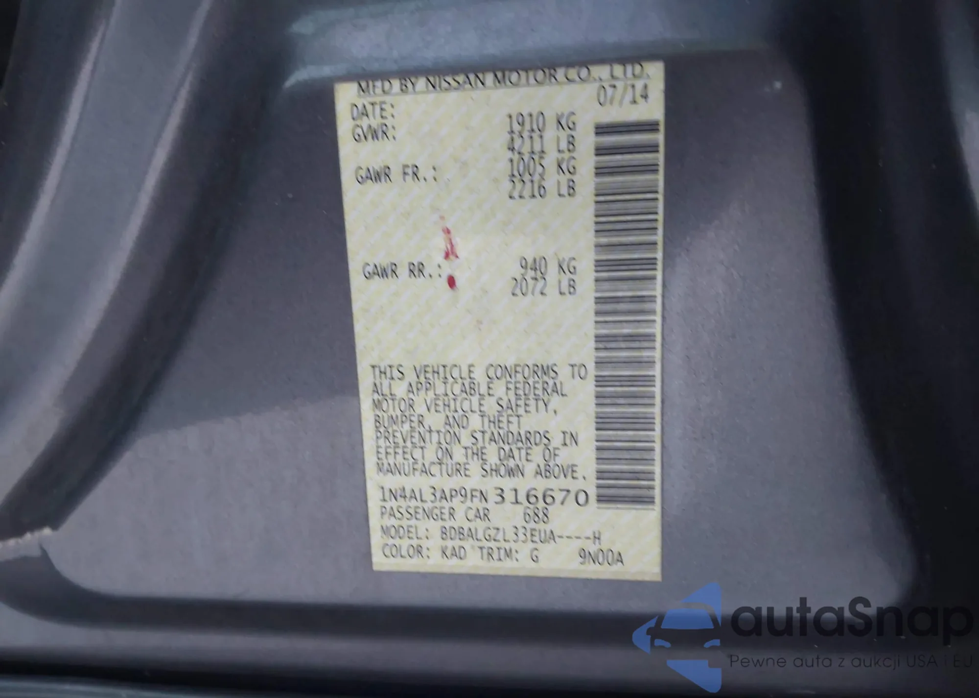 • VIN 1N4AL3AP9FN316670