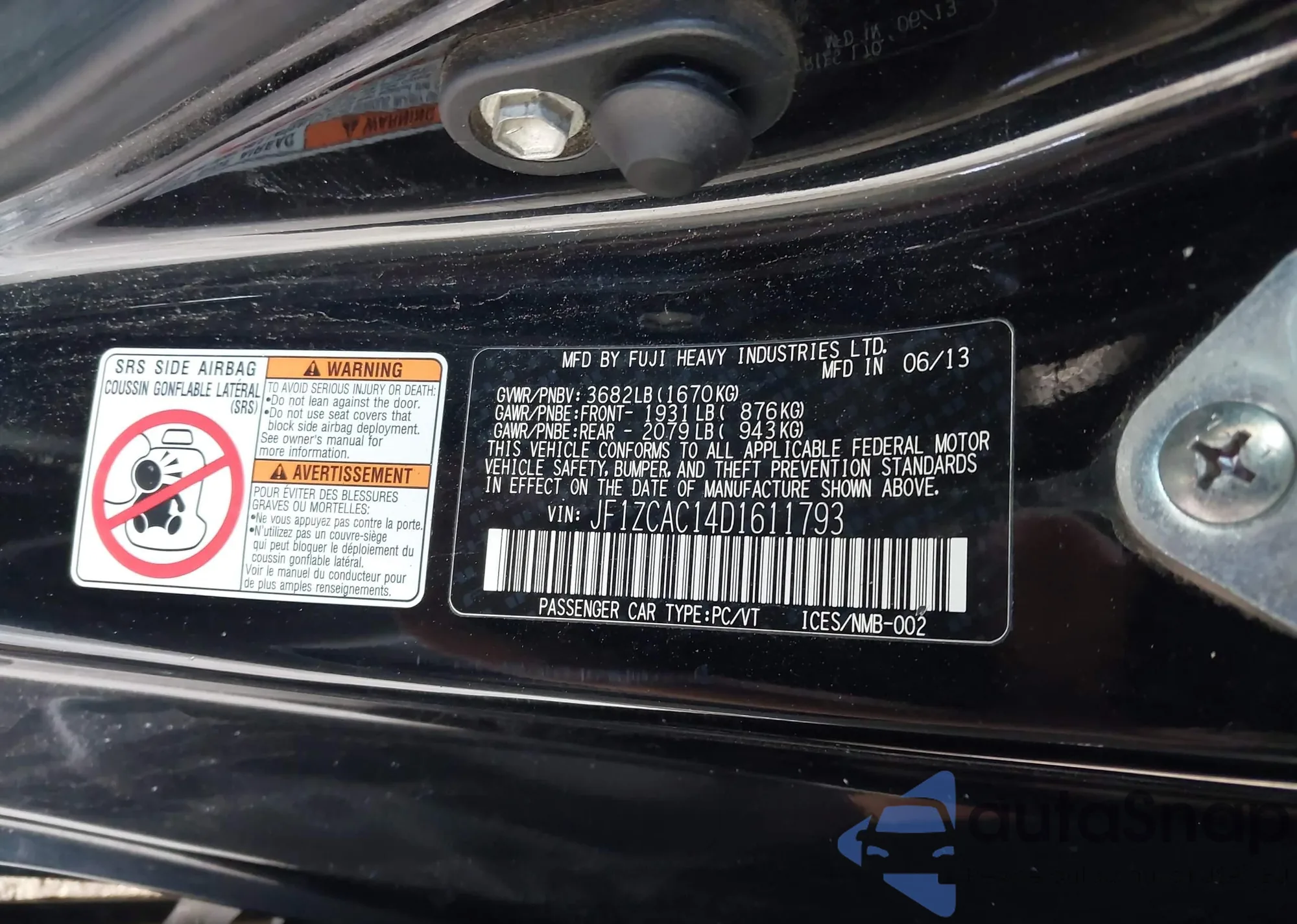 LOT: 43914686 VIN: JF1ZCAC14D1611793
