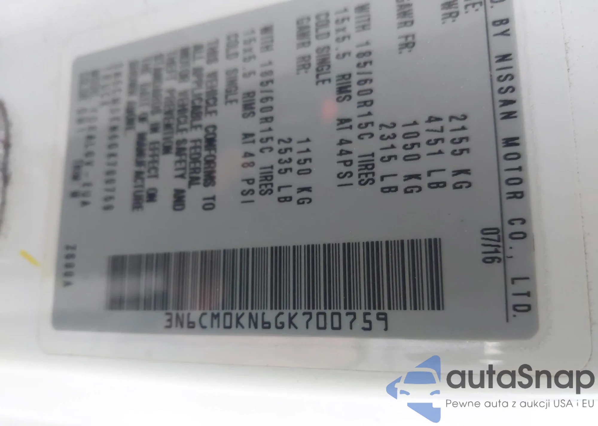 • VIN 3N6CM0KN6GK700759