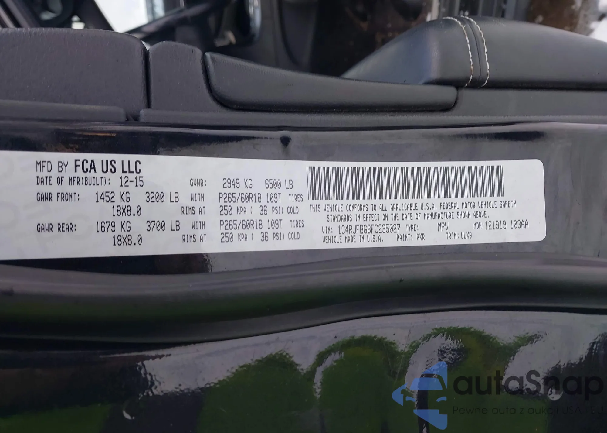 • VIN 1C4RJFBG8FC235027