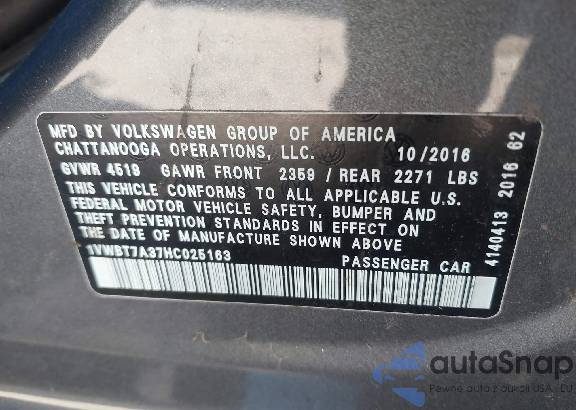 • VIN 1V2AP2CA9JC559979