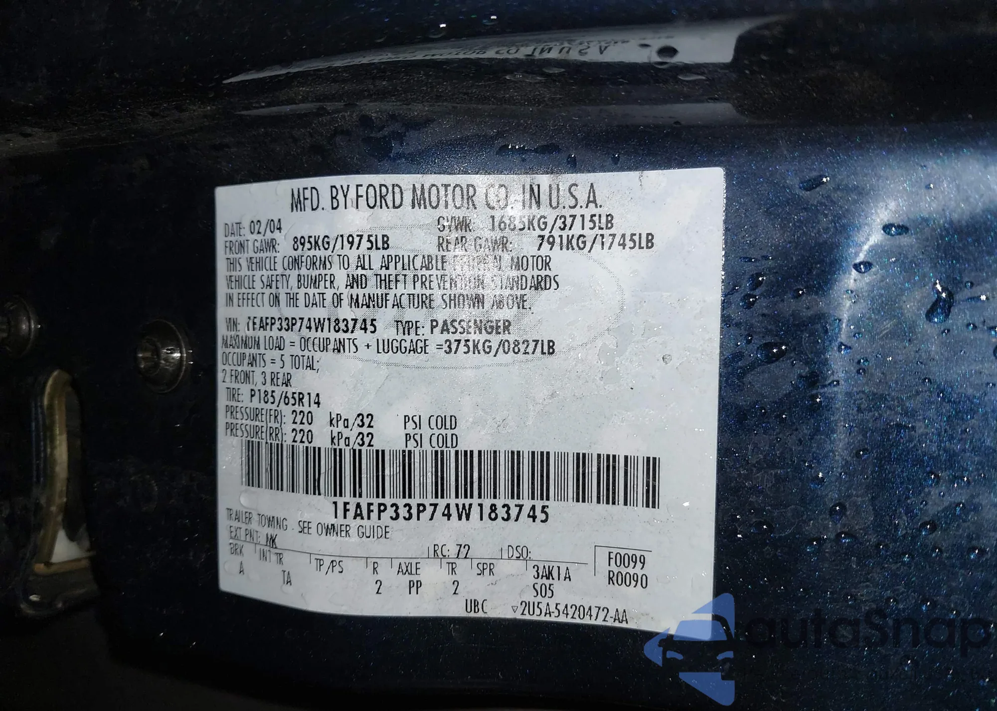 LOT: 43907717 VIN: 1FAFP33P74W183745