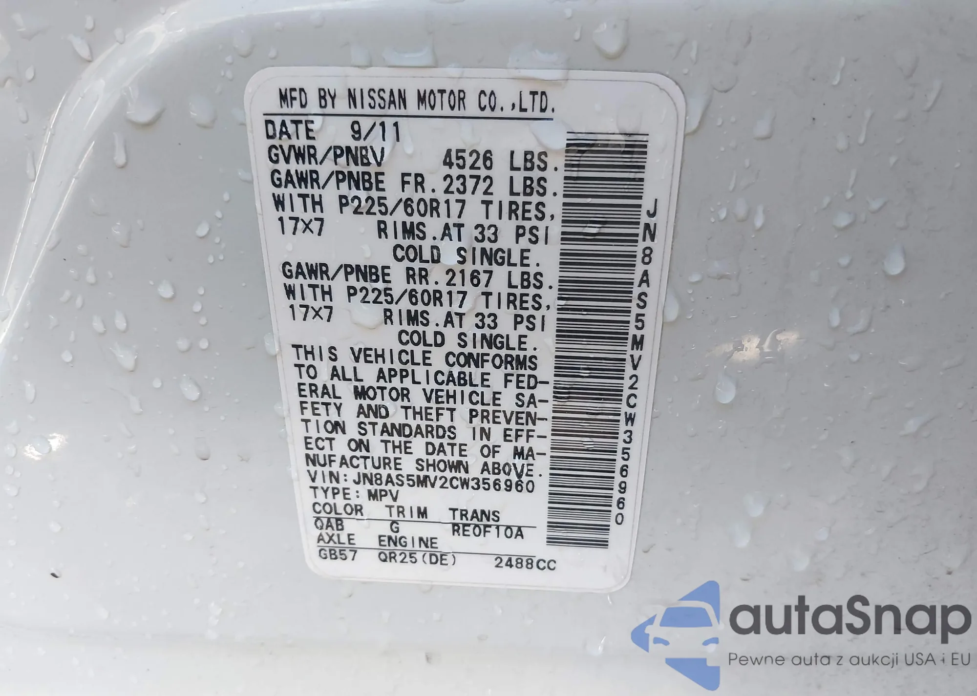 LOT: 43937227 VIN: JN8AS5MV2CW356960