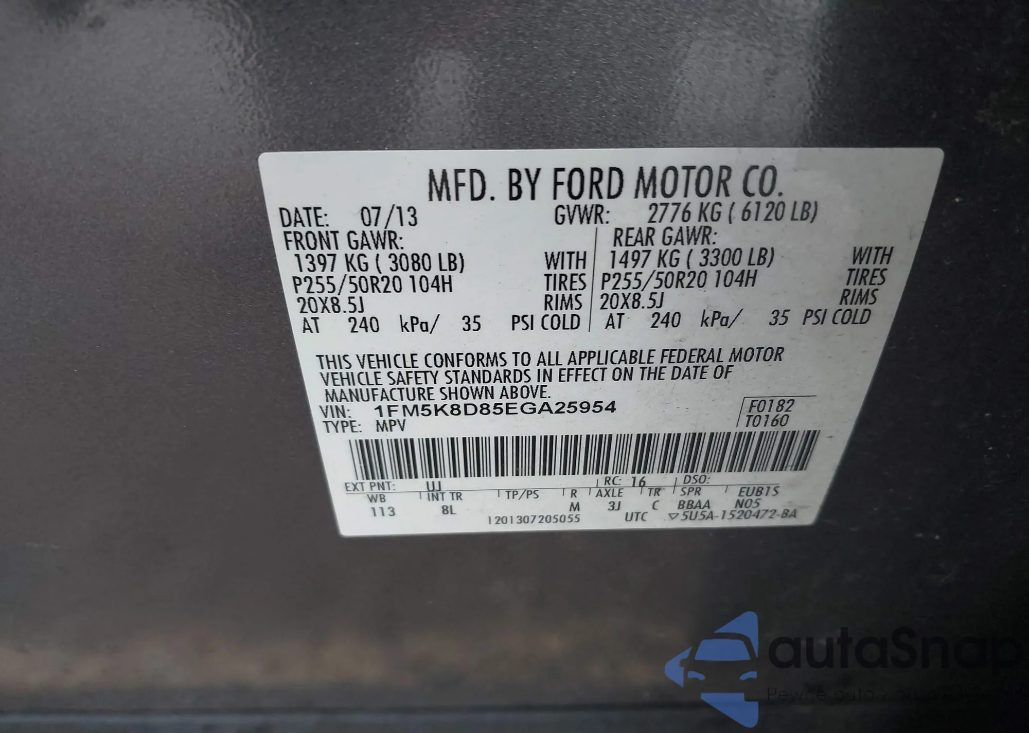 • VIN 1FM5K8D85EGA25954