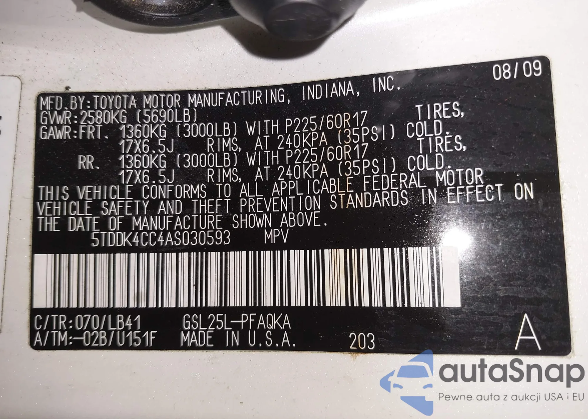 • VIN 5TDDK4CC4AS030593