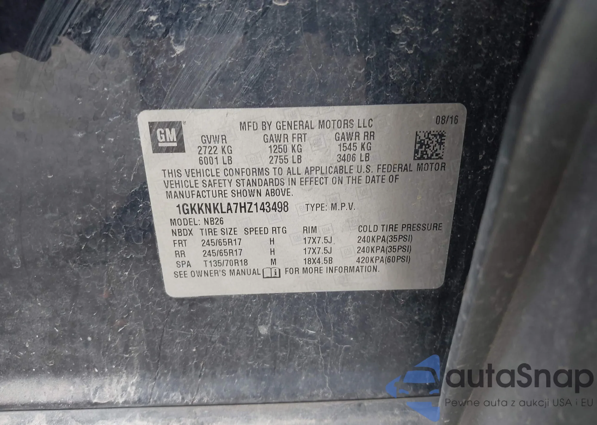 • VIN 5J6RS6H88SL028249