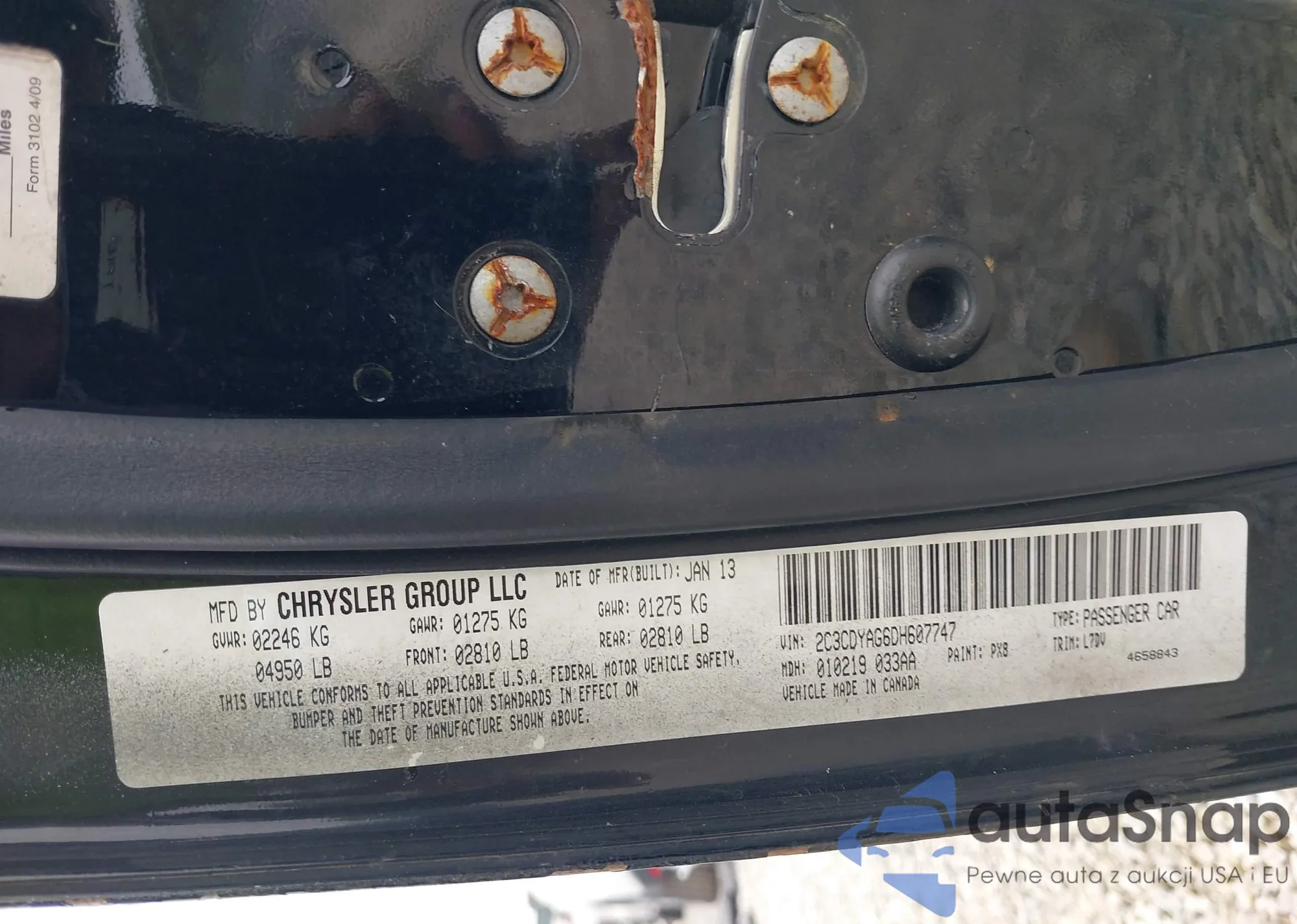 LOT: 43113110 VIN: 2C3CDYAG6DH607747