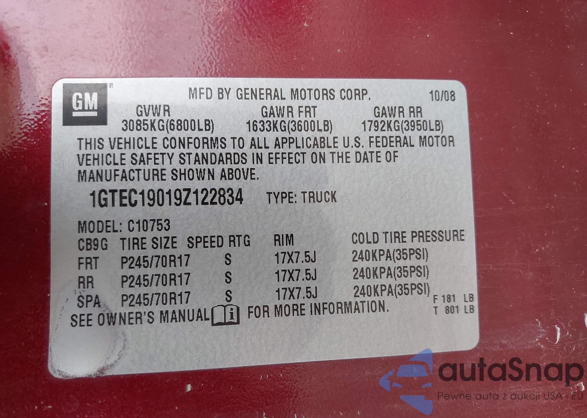 • VIN 1GTEC19019Z122834