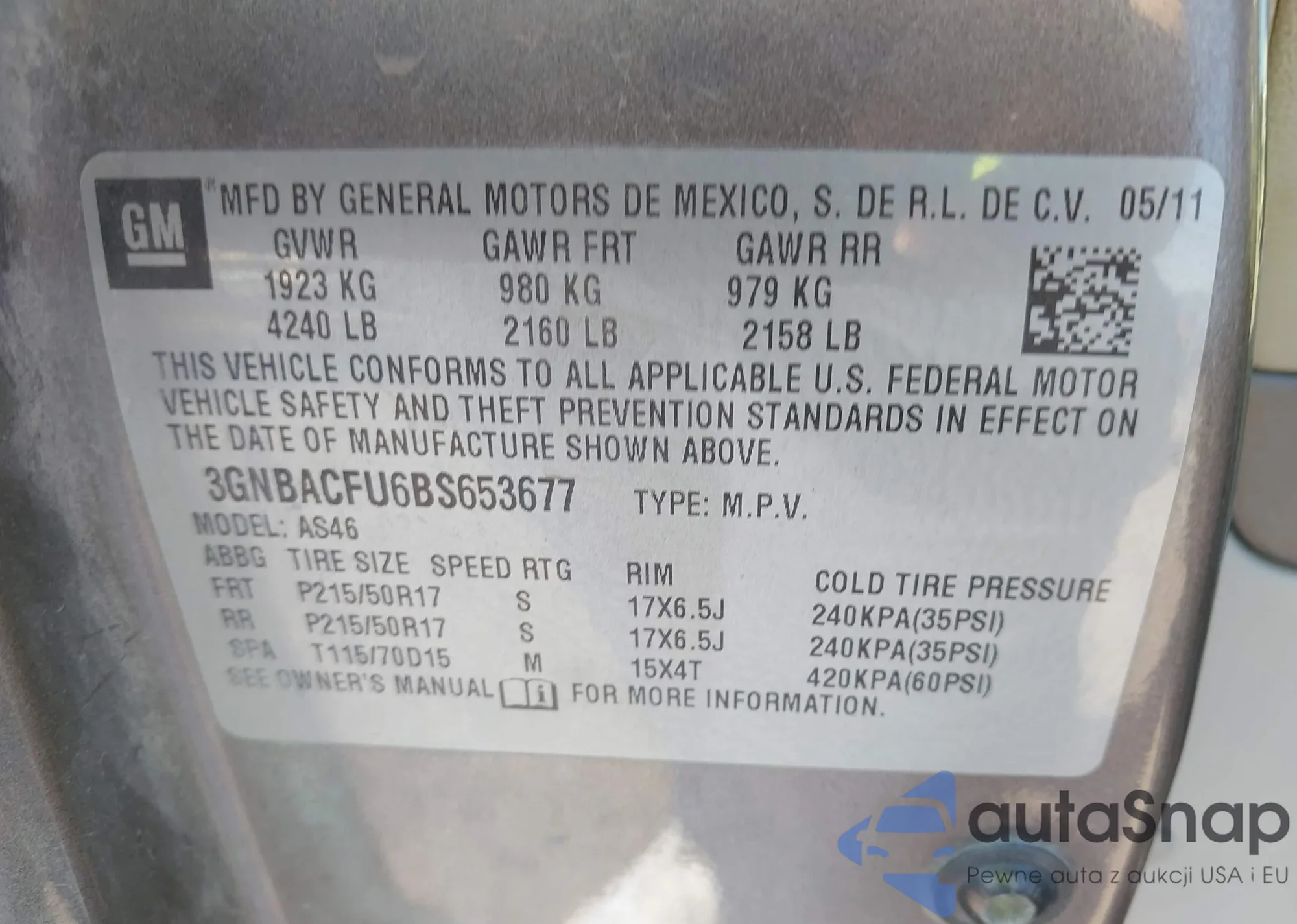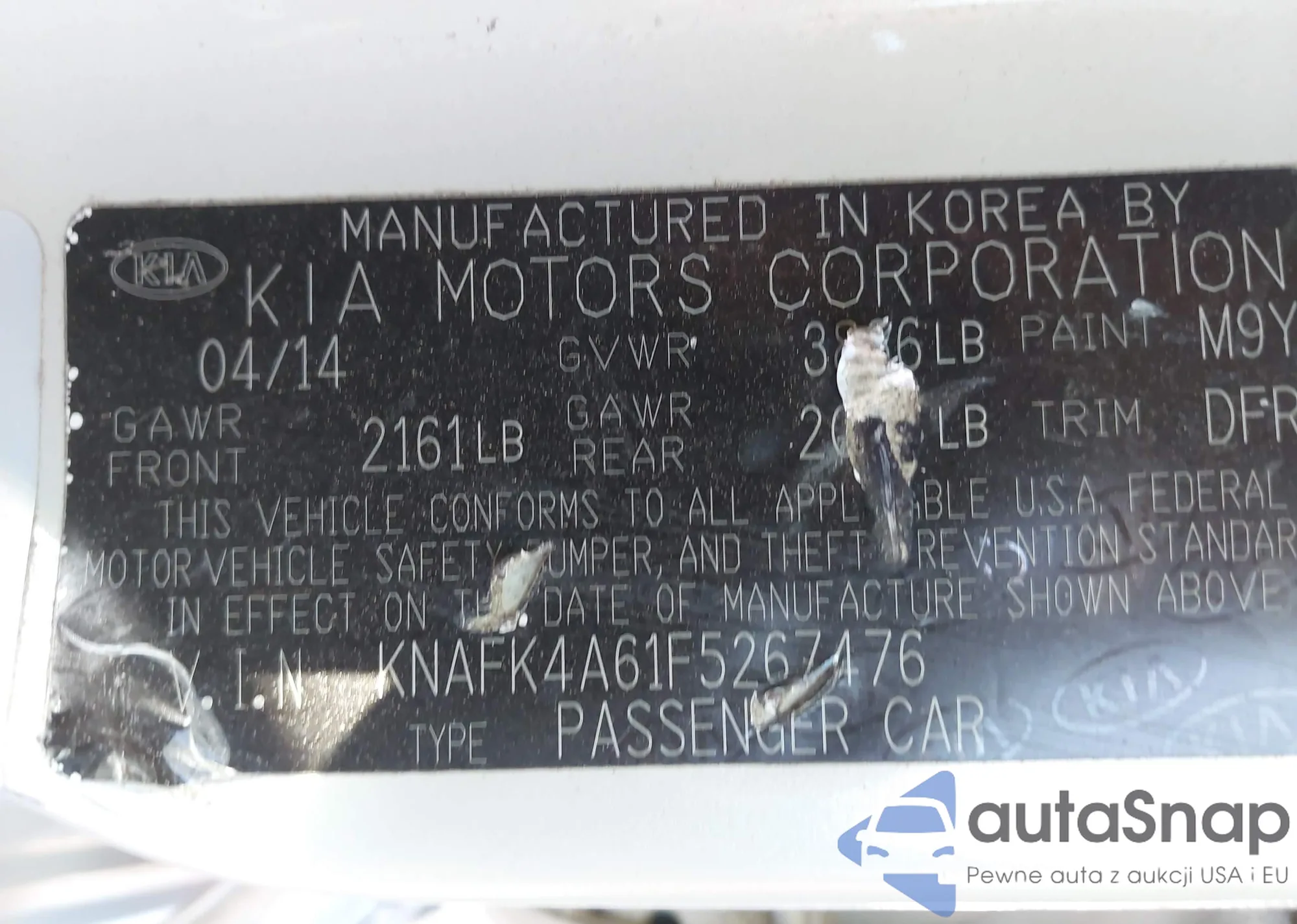 LOT: 43447986 VIN: KNAFK4A61F5267476