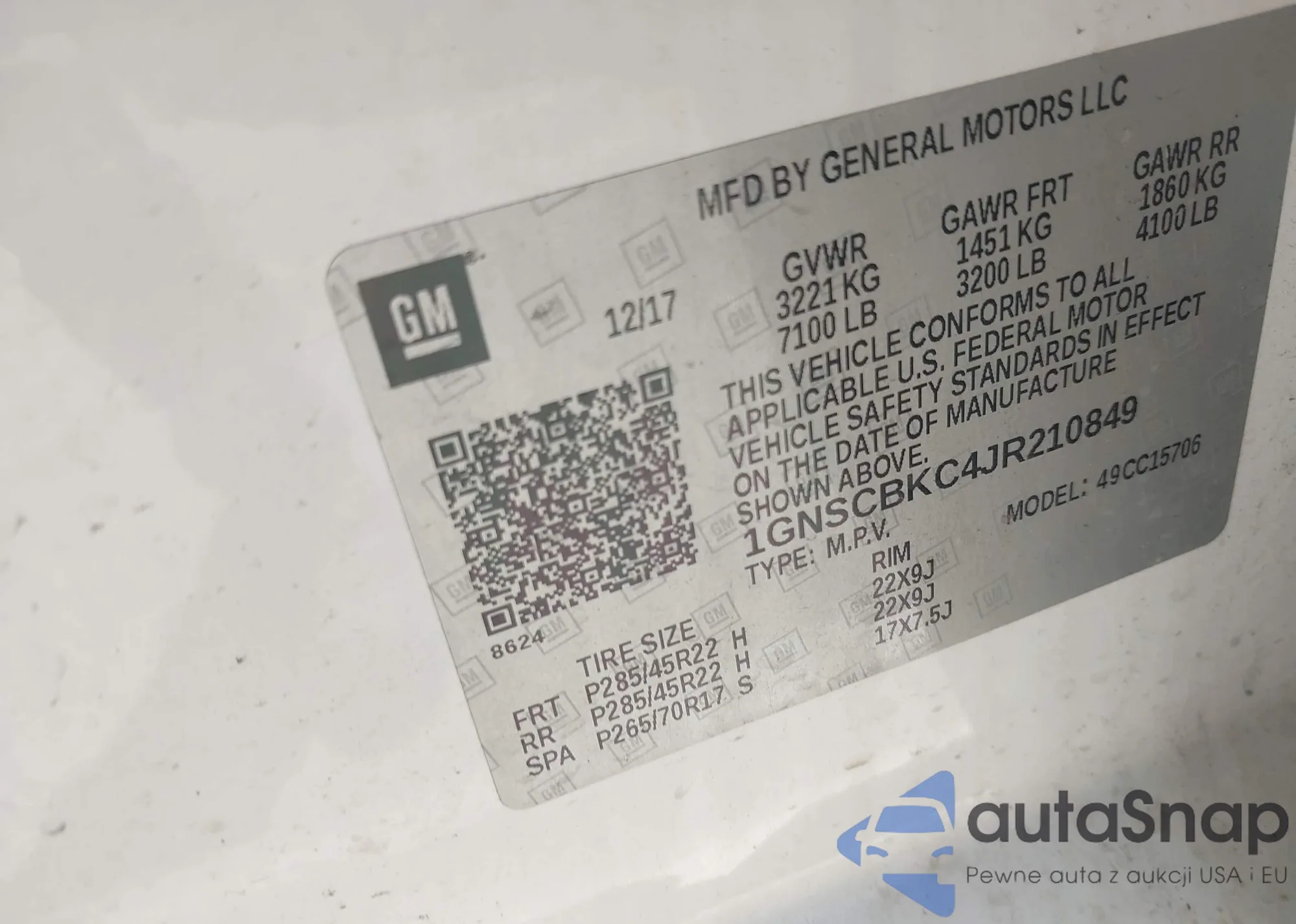 LOT: 43618612 VIN: 1GNSCBKC4JR210849