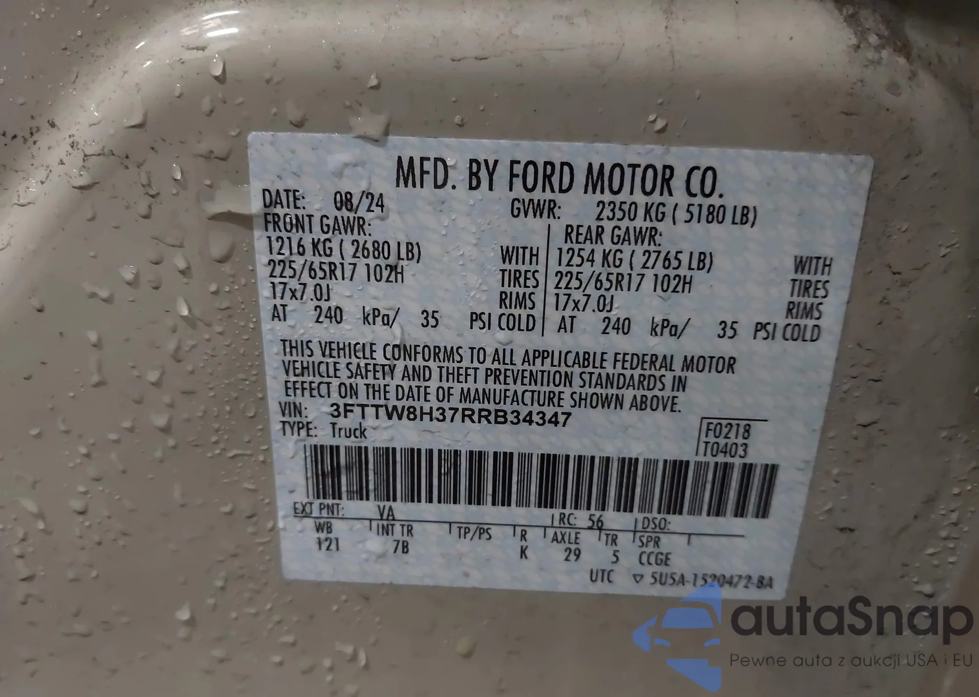 • VIN 3FTTW8H37RRB34347