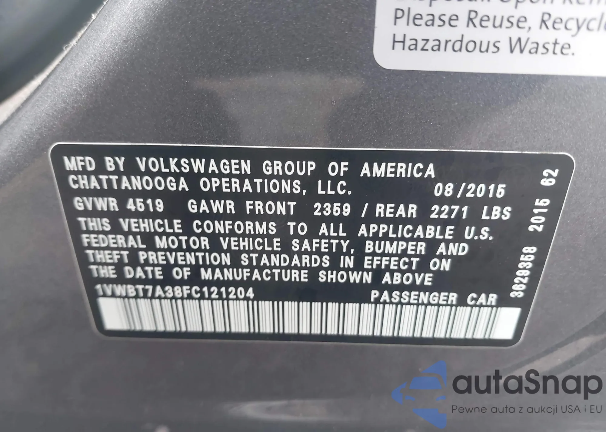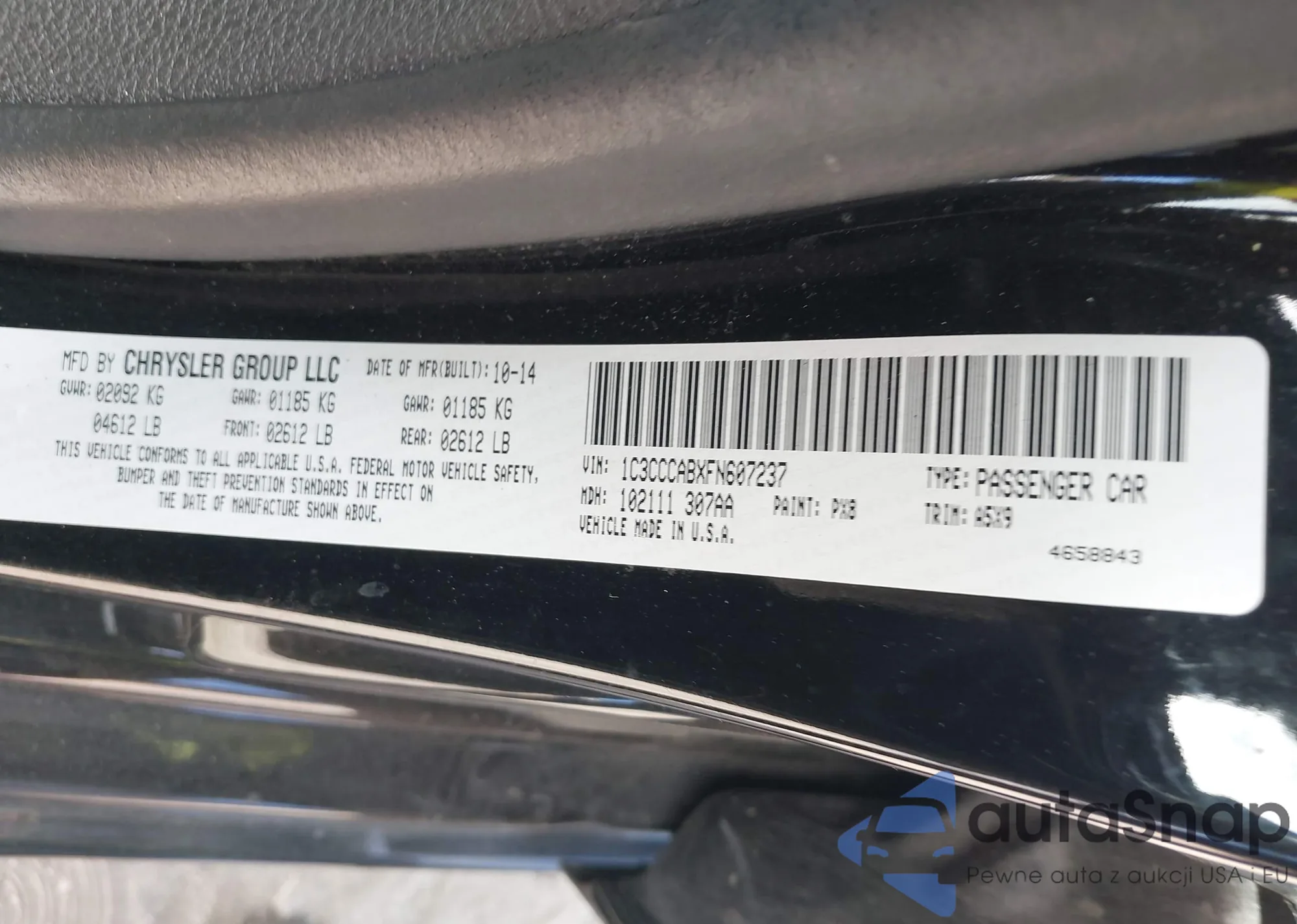 LOT: 43467958 VIN: 1C3CCCABXFN607237