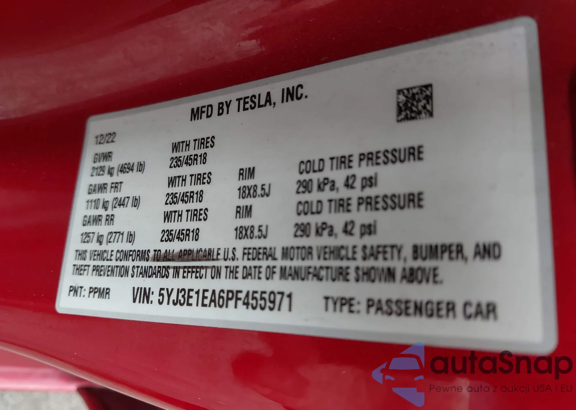 • VIN 5YJ3E1EA6PF455971