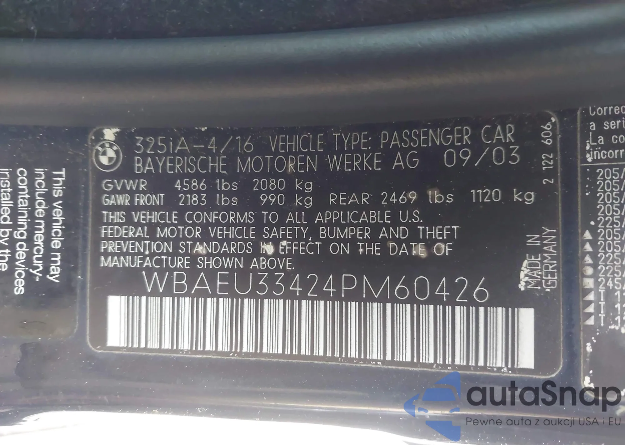 • VIN 5Y2SL658X7Z400817