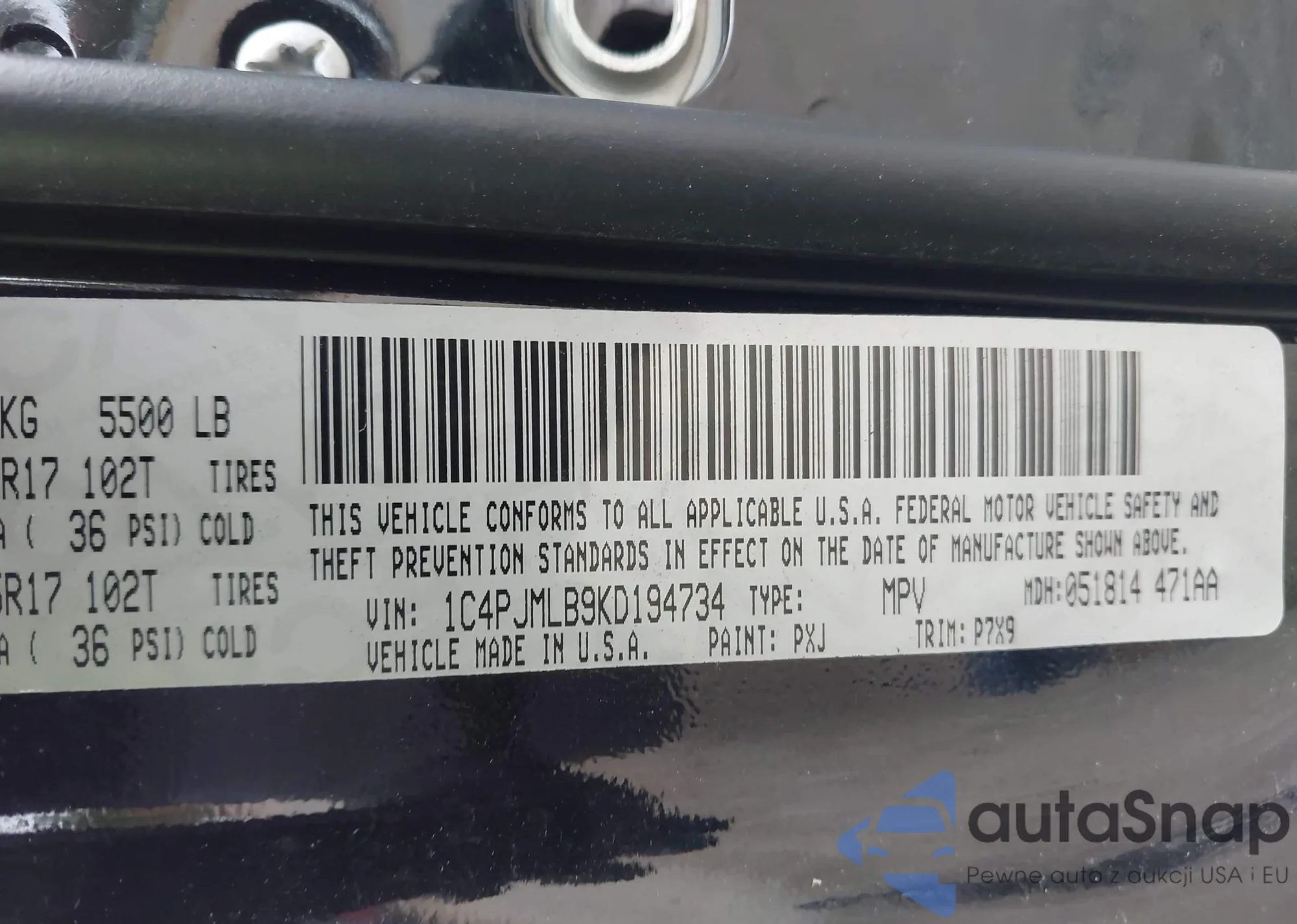 • VIN 1C4PJMLB9KD194734