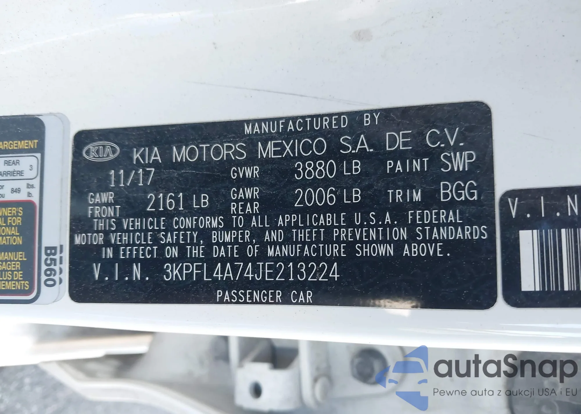 LOT: 43785245 VIN: 3KPFL4A74JE213224