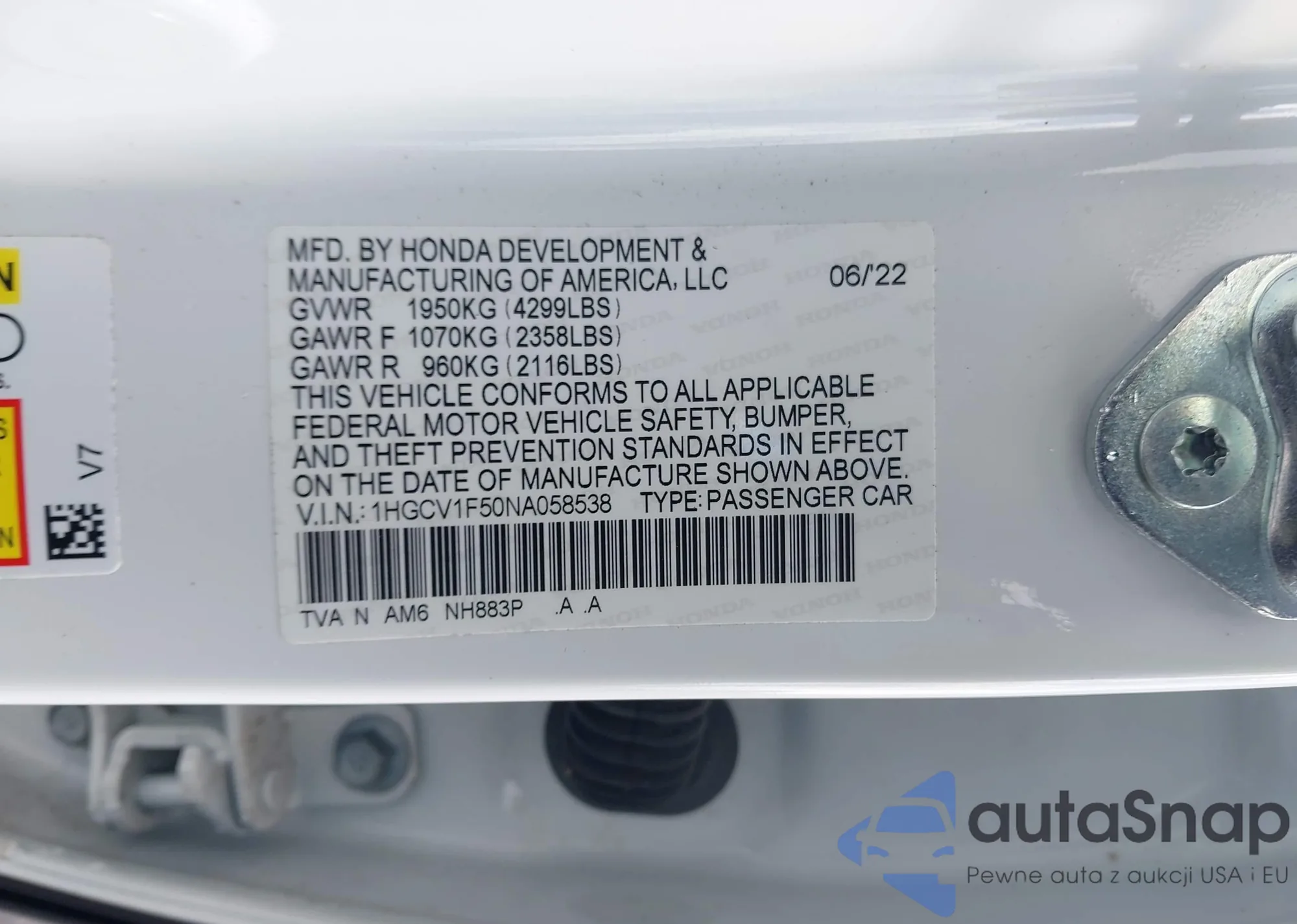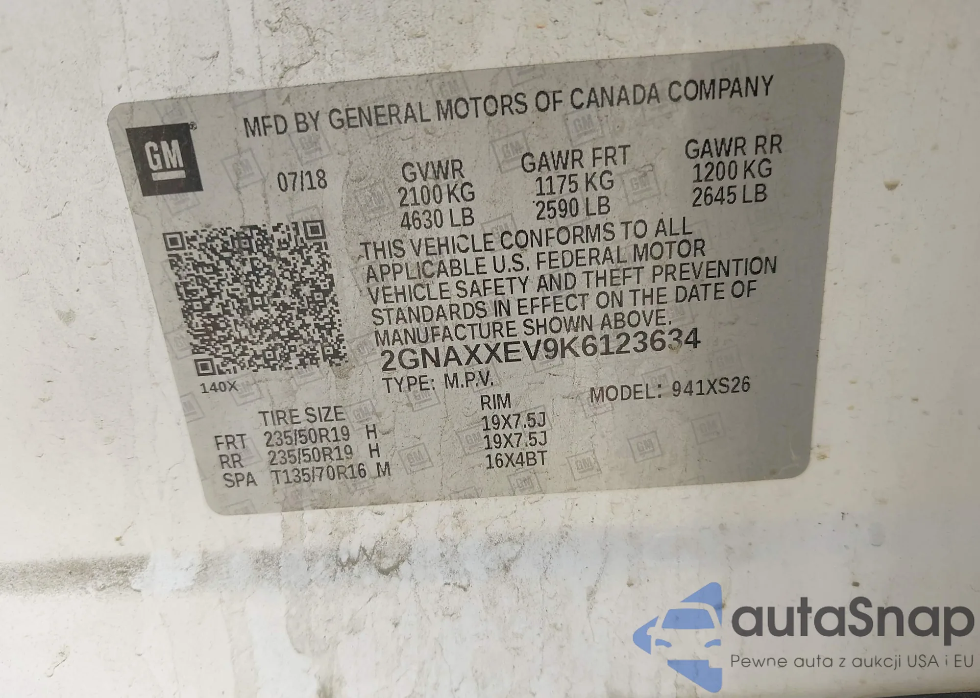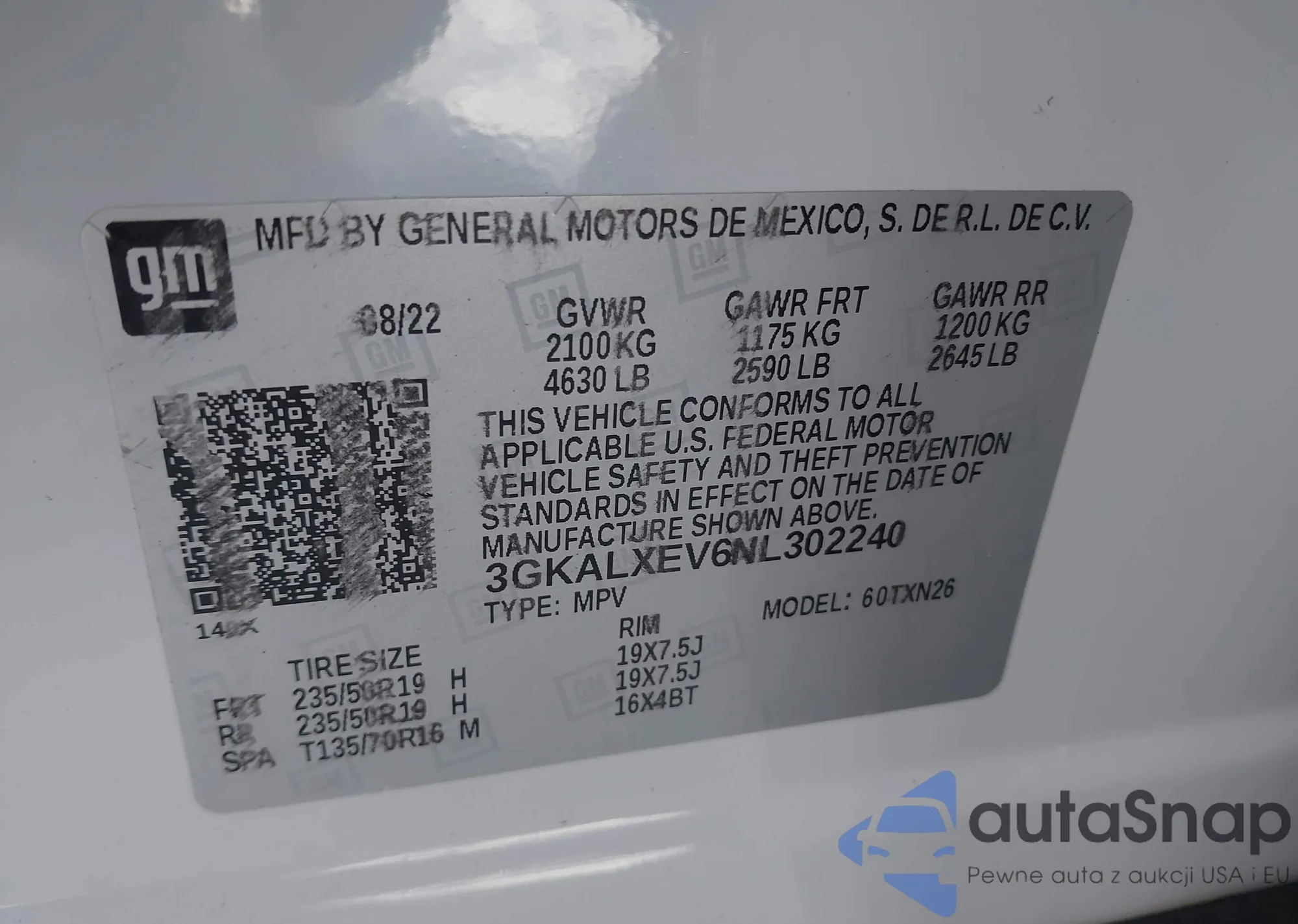 • VIN 3GKALXEV6NL302240
