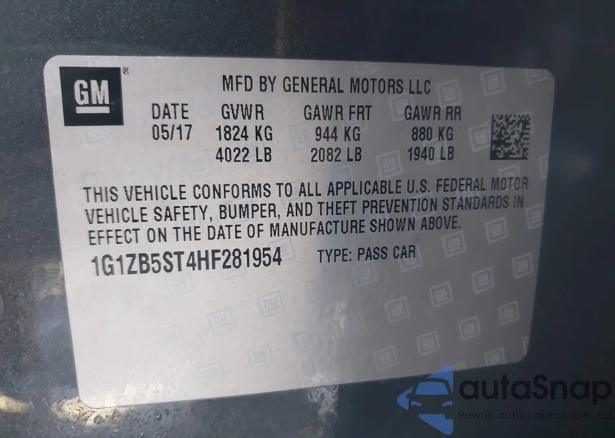 LOT: 42741371 VIN: 1VWAT7A35GC020084
