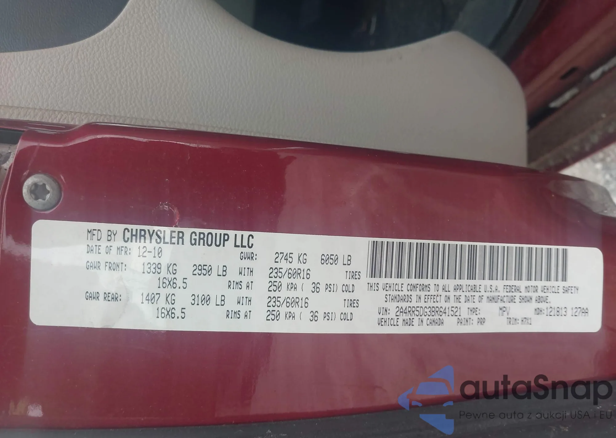 • VIN 2A4RR5DG3BR641521