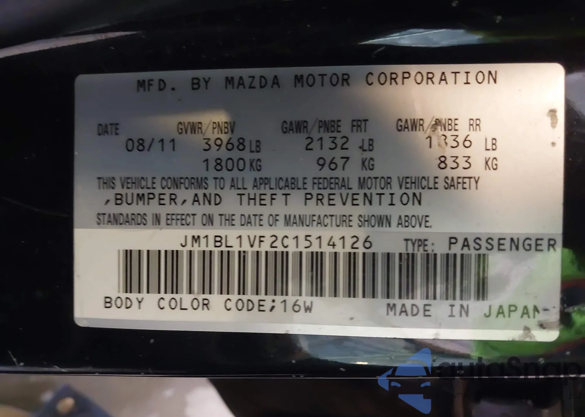 LOT: 43656664 VIN: JM1BL1VF2C1514126