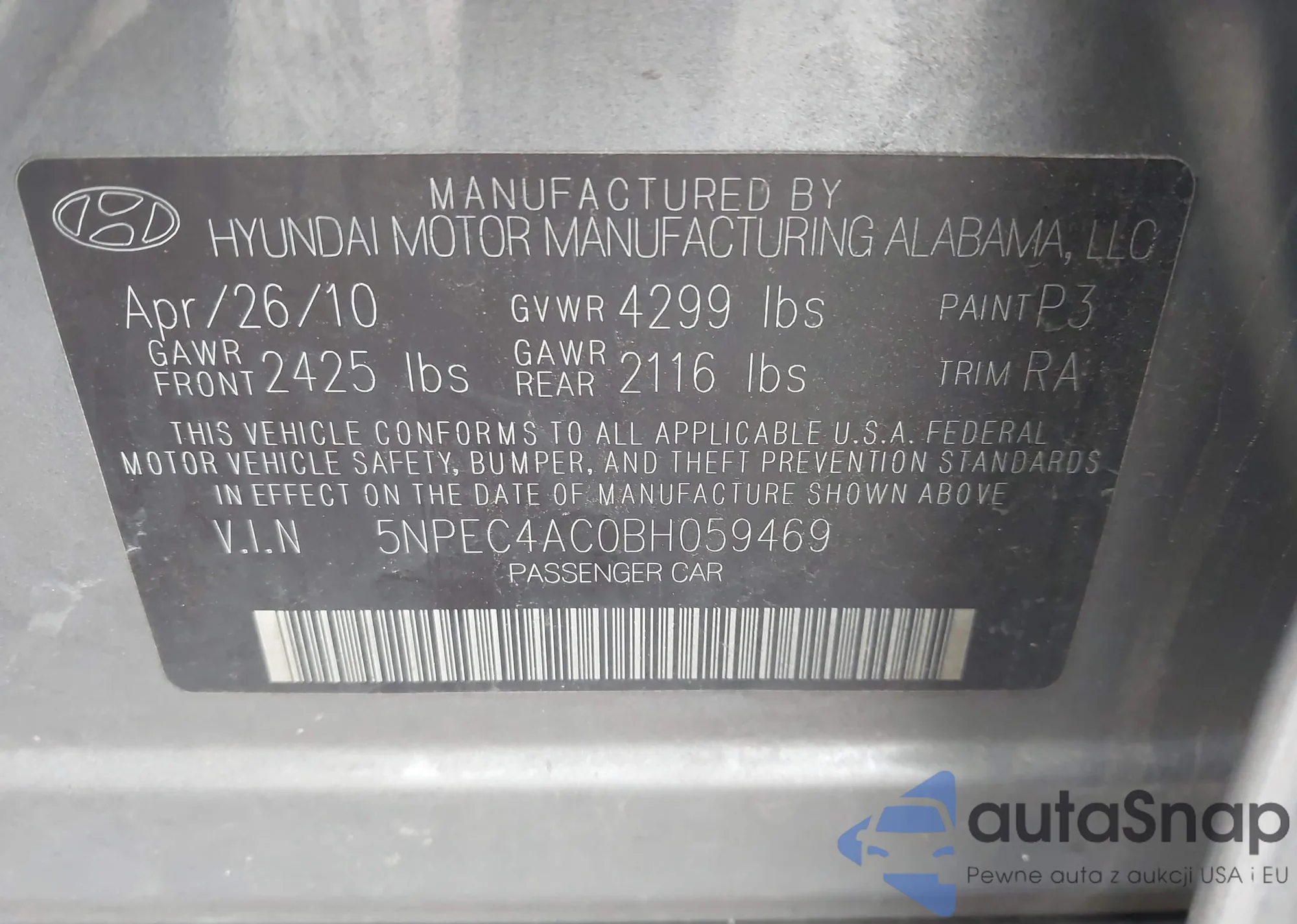 LOT: 43960429 VIN: WDDHF8HB1AA116301
