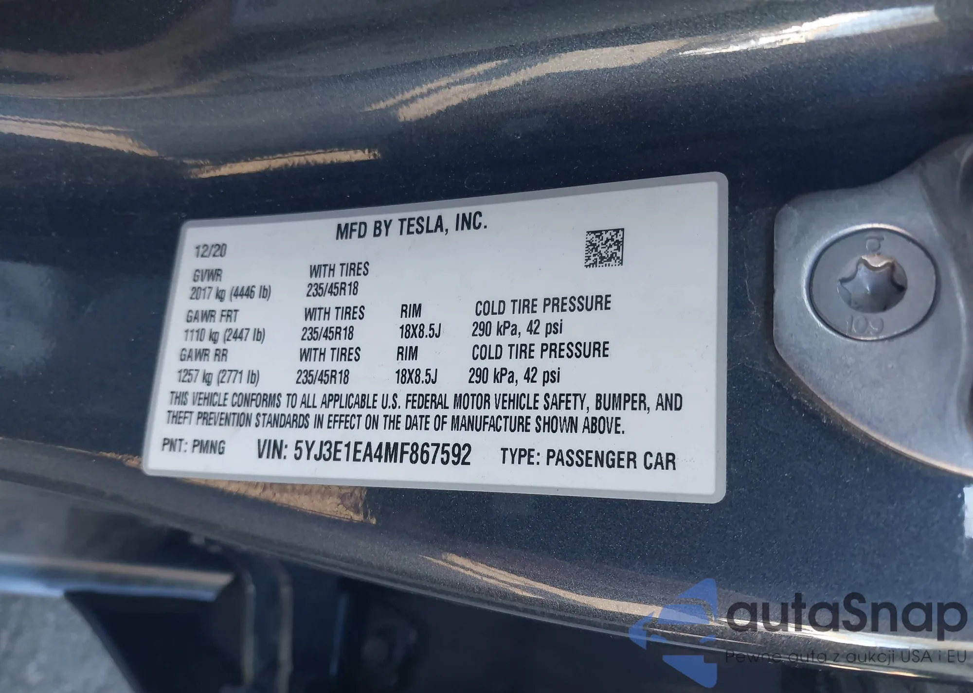 • VIN 5YJ3E1EA4MF867592