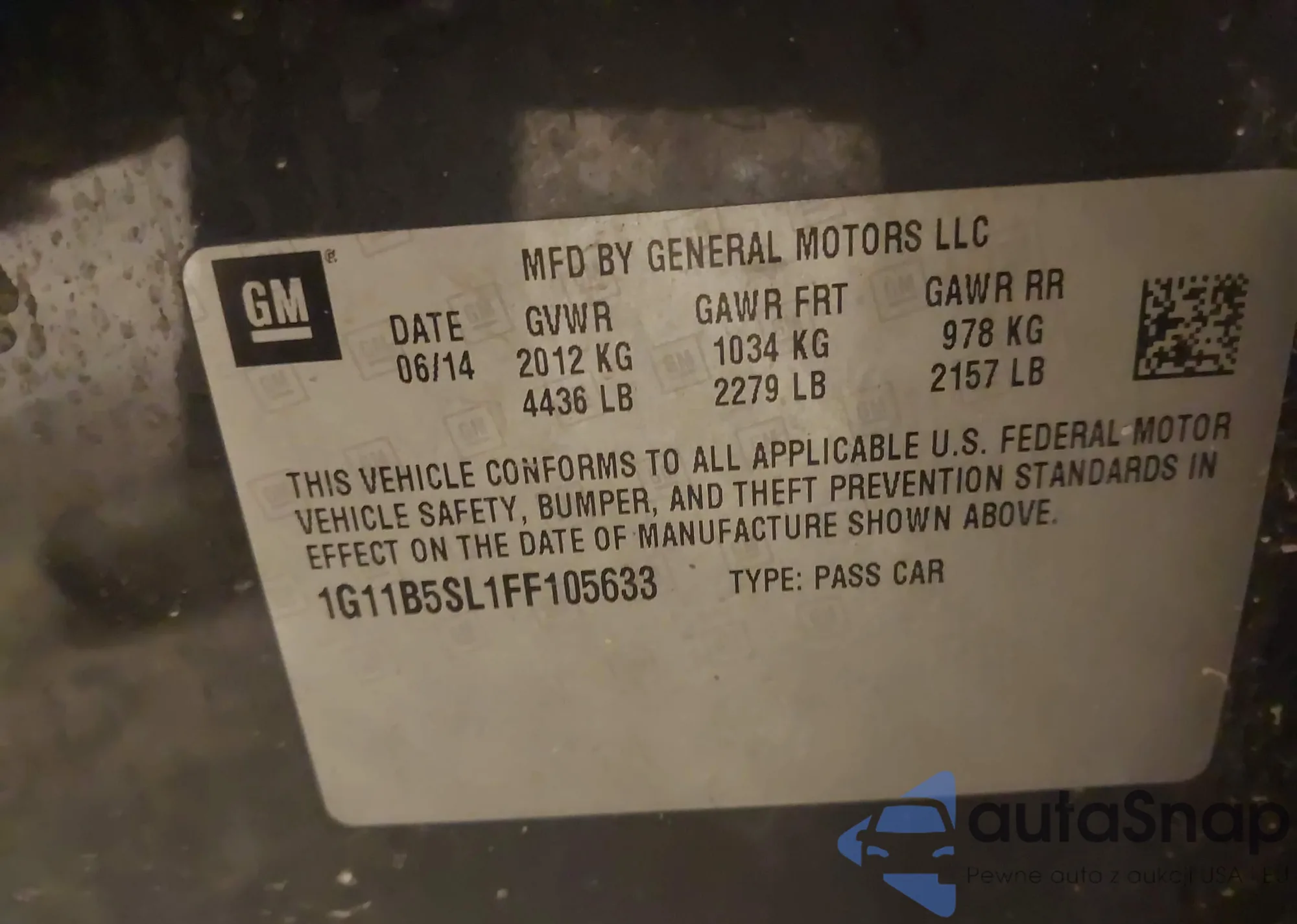 LOT: 43816233 VIN: 1G11B5SL1FF105633