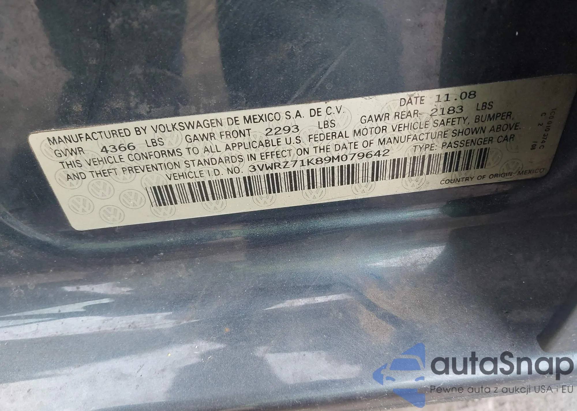 • VIN 3VWRZ71K89M079642