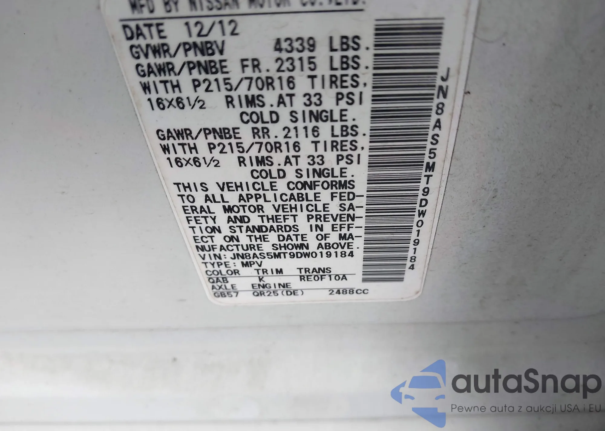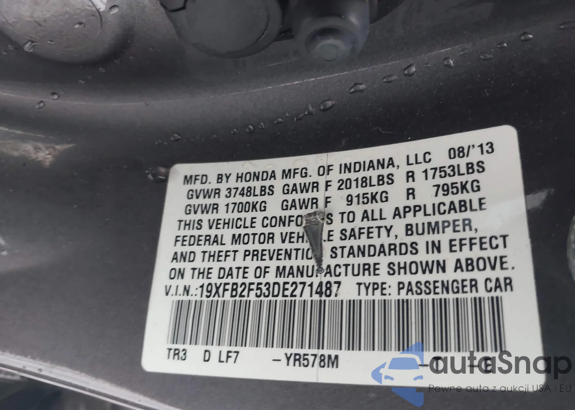 • VIN 19XFB2F53DE271487