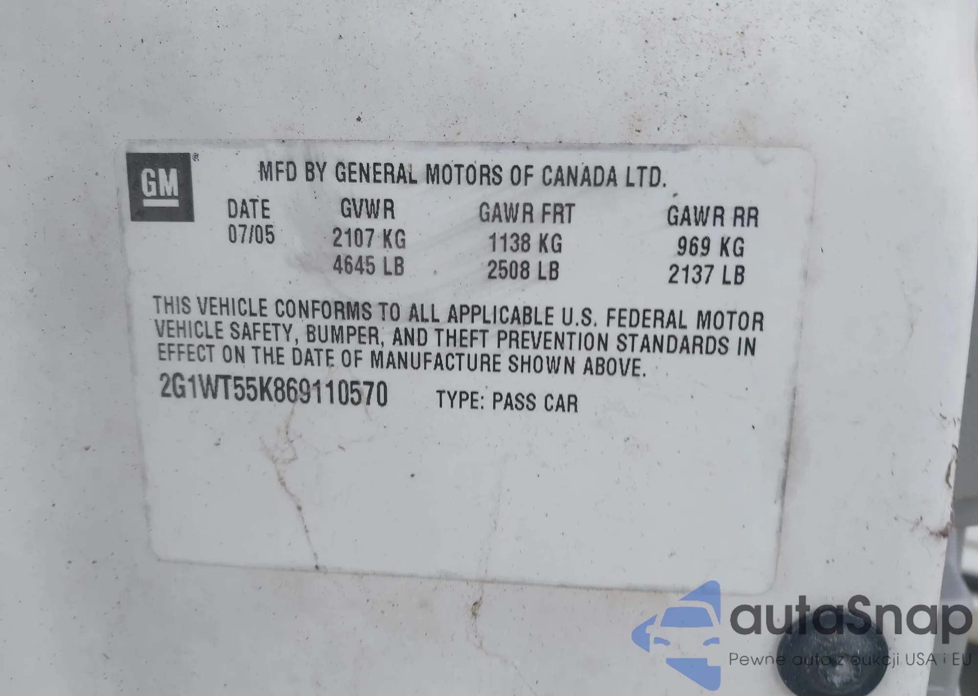 • VIN 2G1WT55K869110570