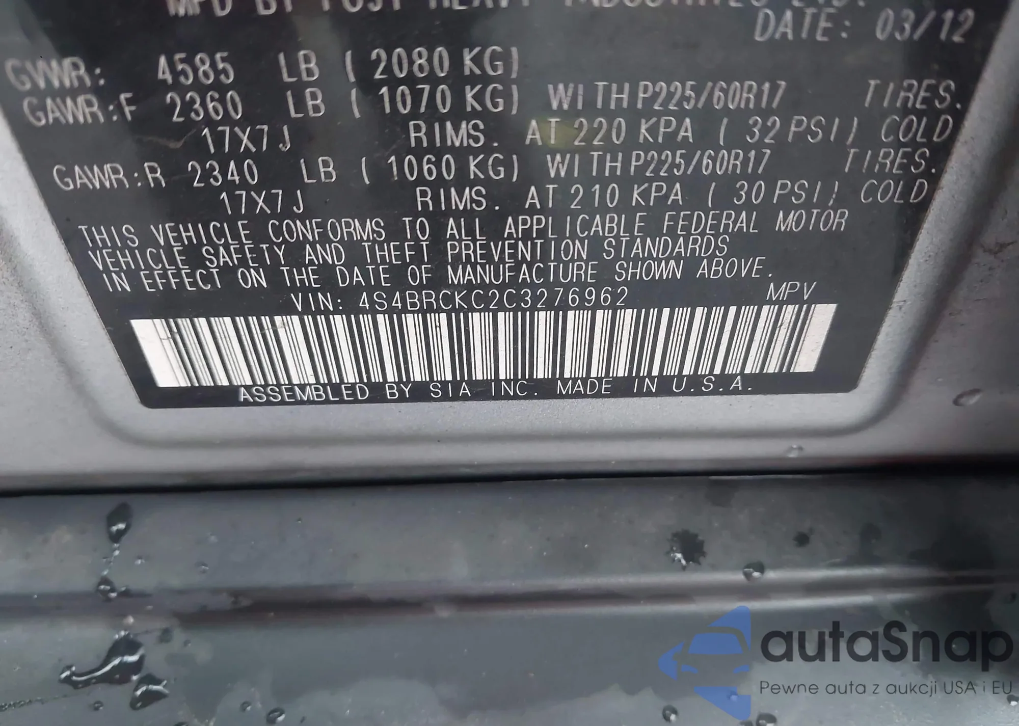 LOT: 43936882 VIN: 1HGCP2F36AA090564