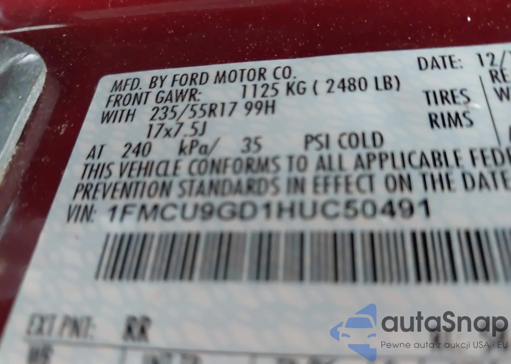 • VIN 1FMCU9GD1HUC50491