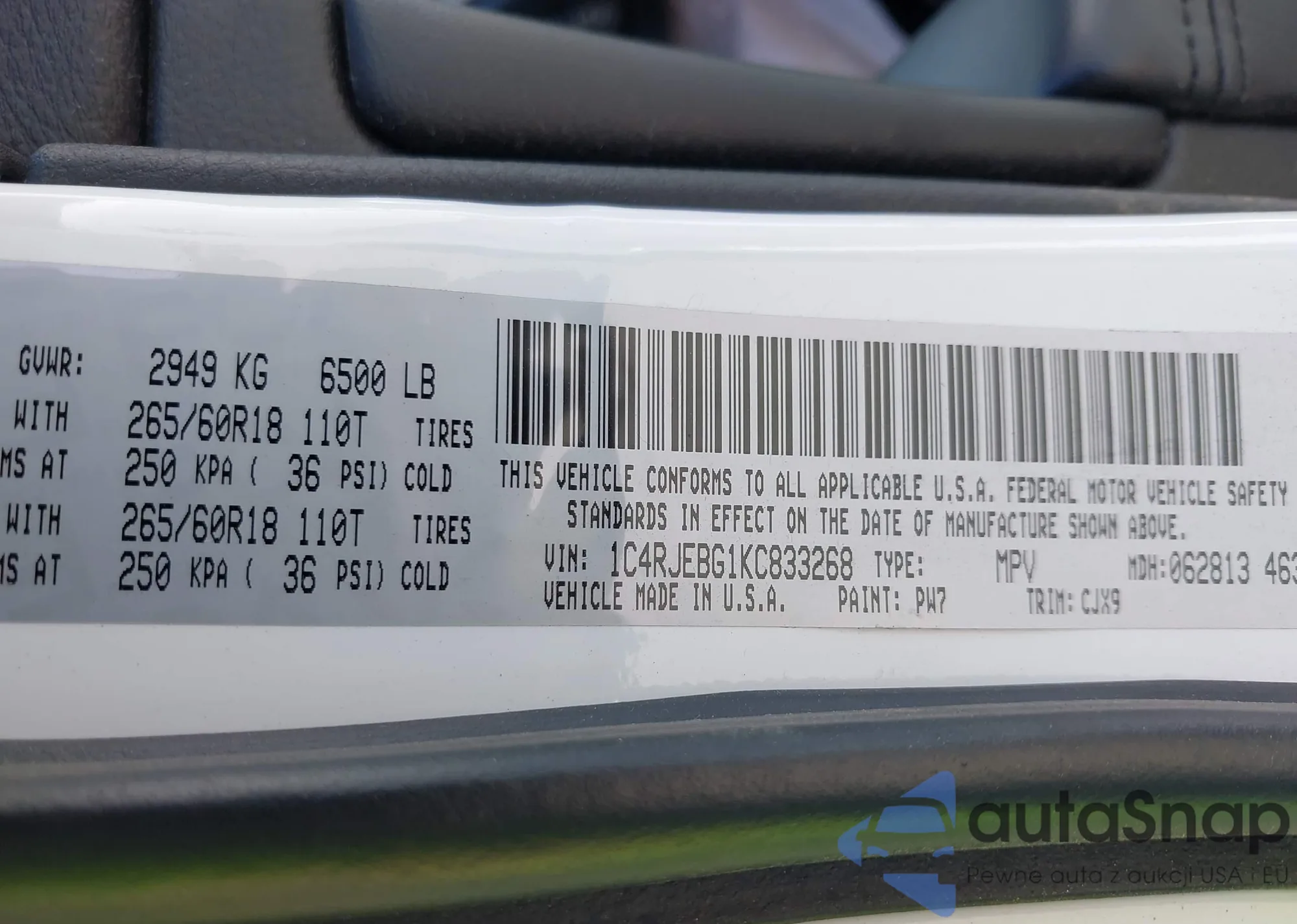 • VIN 1C4RJEBG1KC833268
