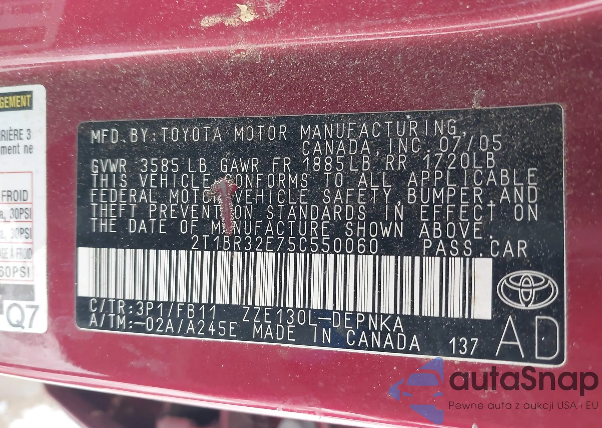 • VIN JTMBK32VX95081005