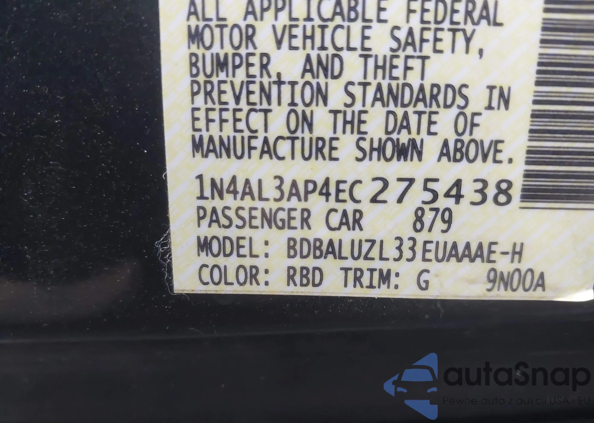 LOT: 43822149 VIN: 1N4AL3AP4EC275438