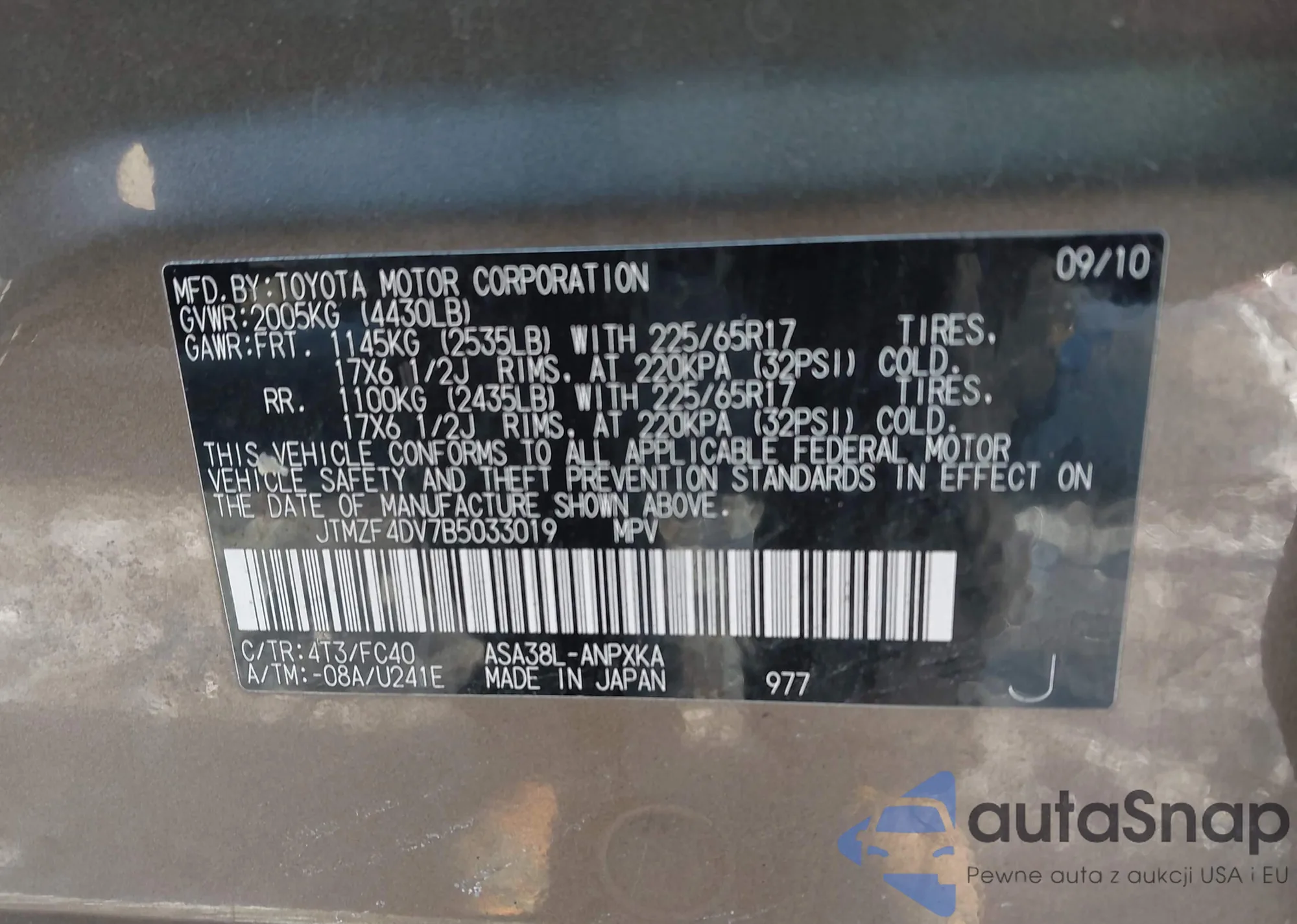 LOT: 43878196 VIN: JTMZF4DV7B5033019