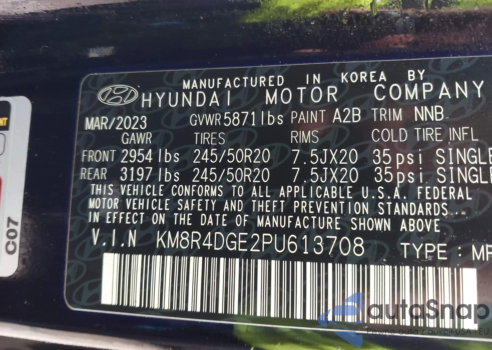 LOT: 43890587 VIN: 5NPLS4AG6PH086549