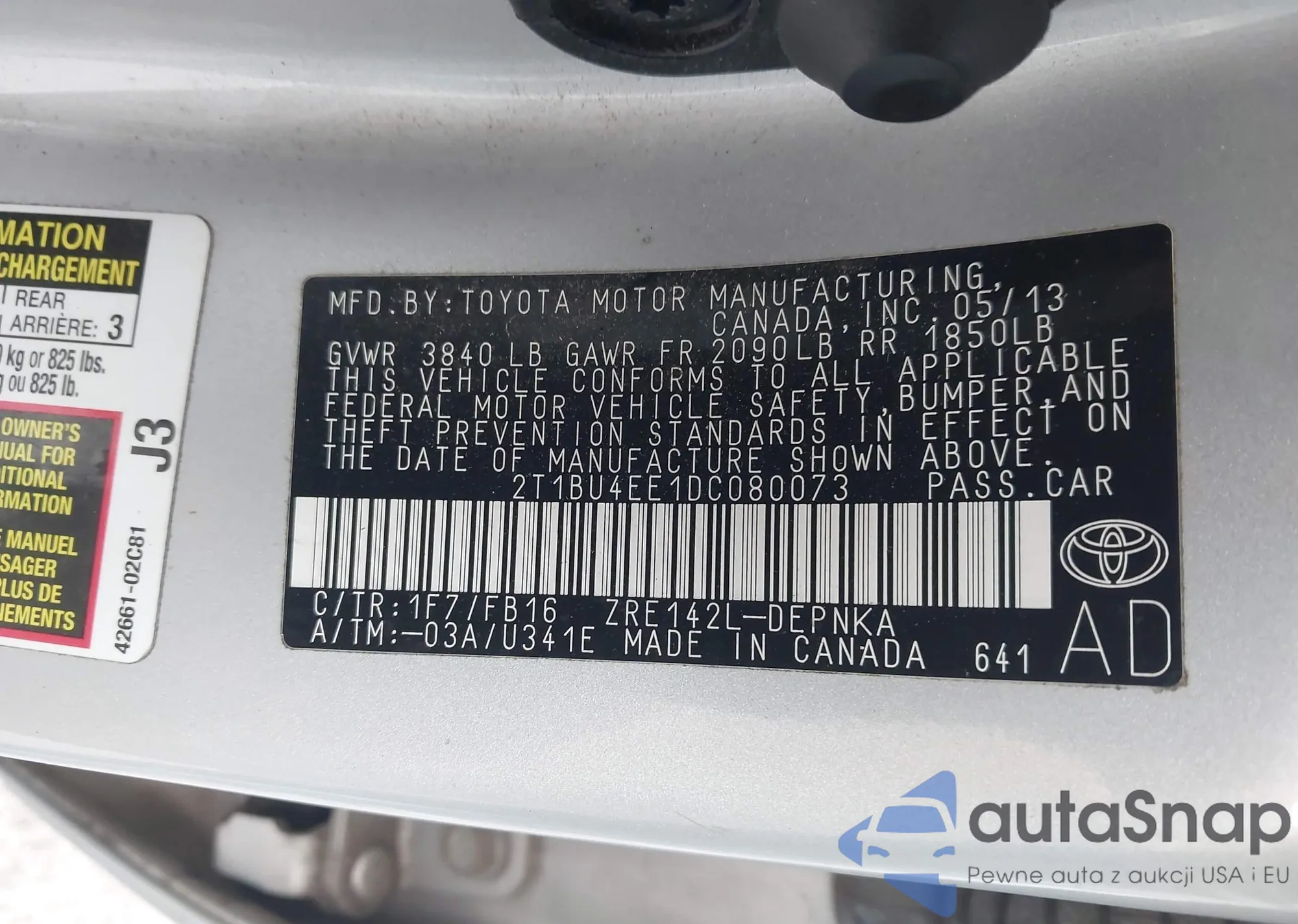 • VIN 2T1BU4EE1DC080073