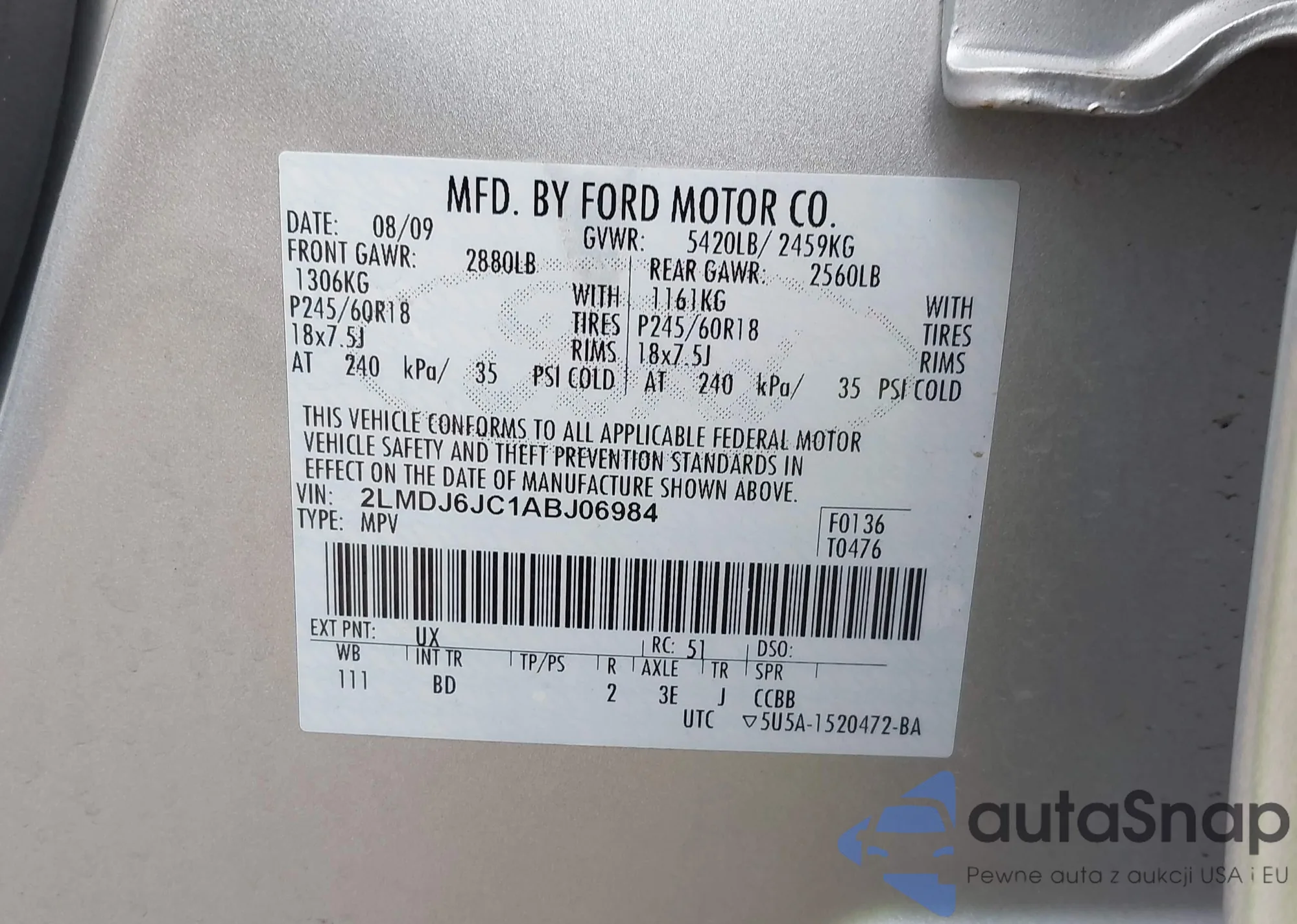 LOT: 43824257 VIN: 2LMDJ6JC1ABJ06984