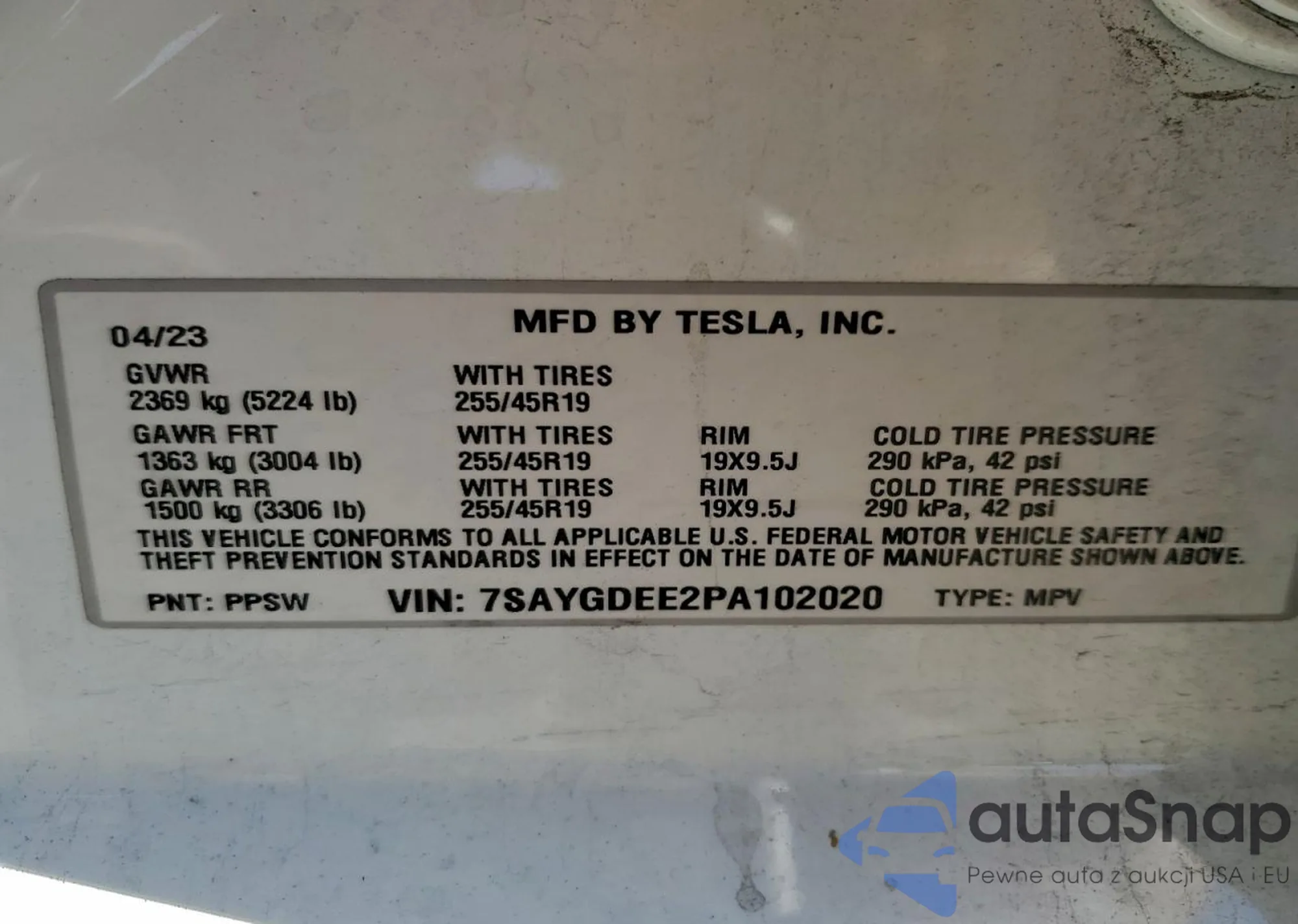 • VIN 7SAYGDEE2PA102020