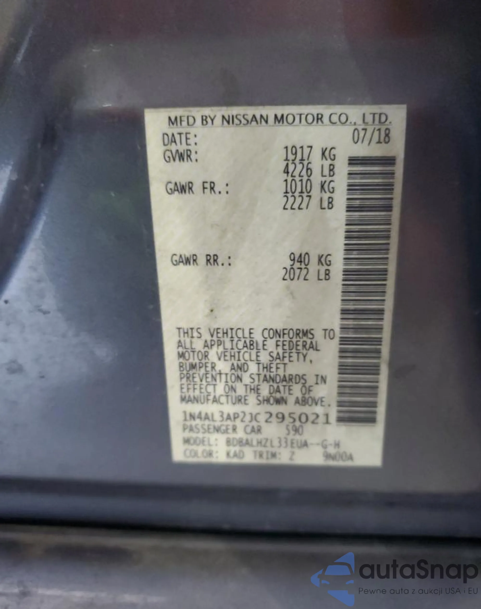 • VIN 1N4AA6AP8GC392904