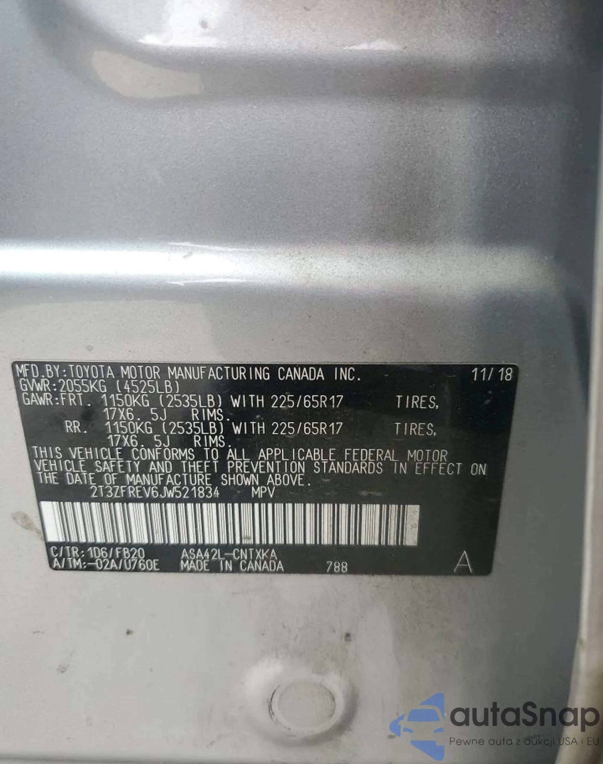 • VIN 4T1B11HK0JU046130