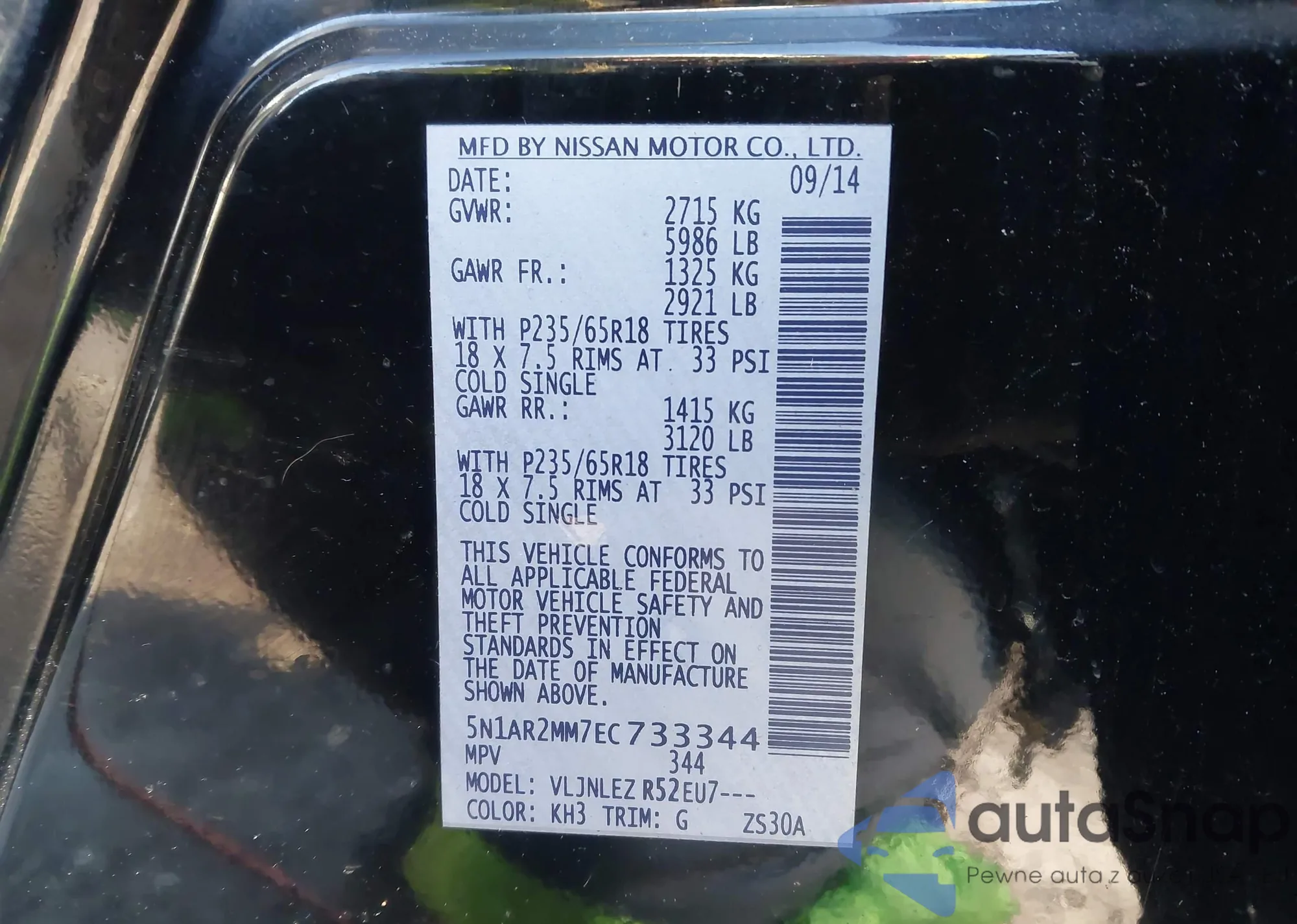 • VIN 5N1AR2MM7EC733344