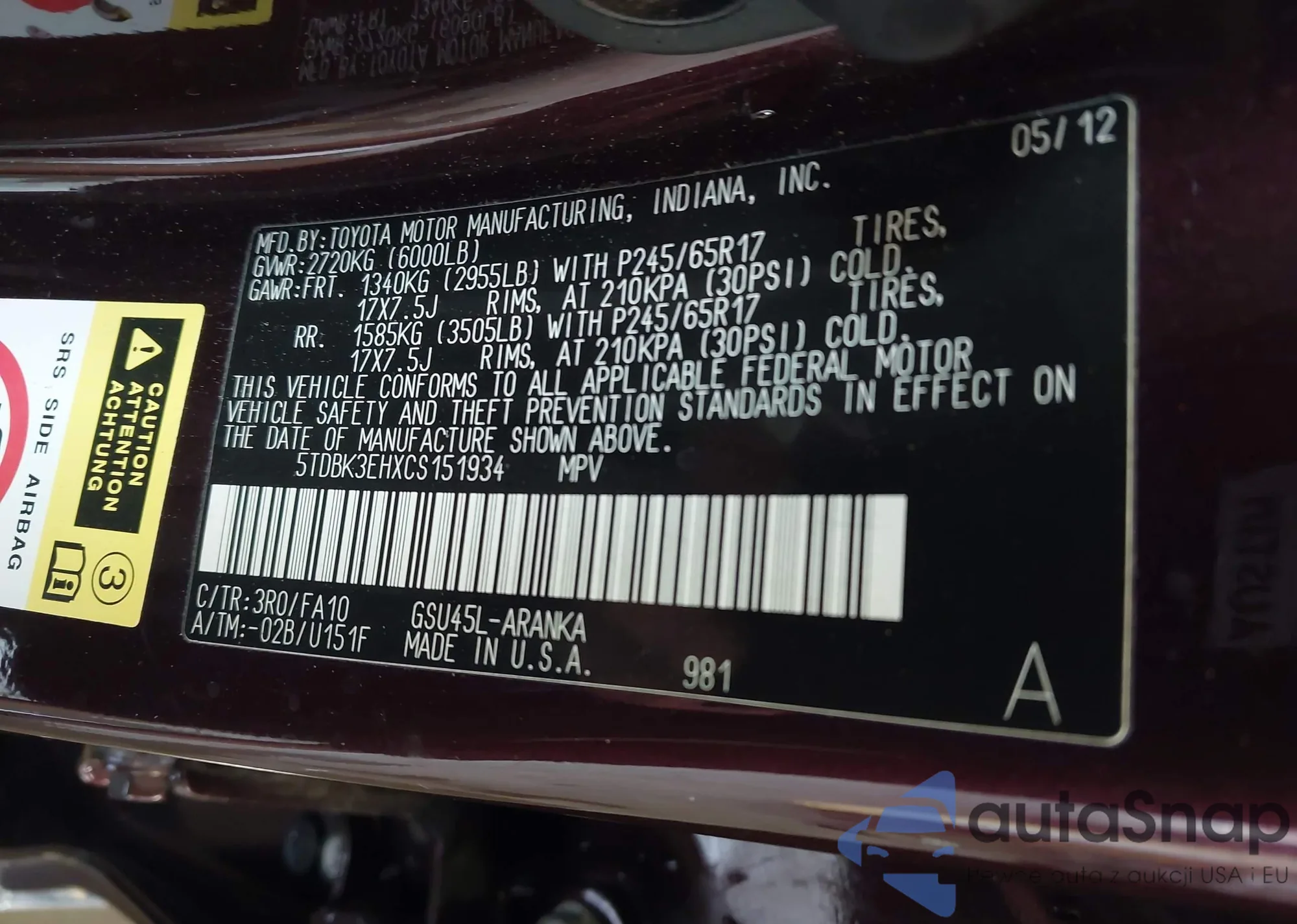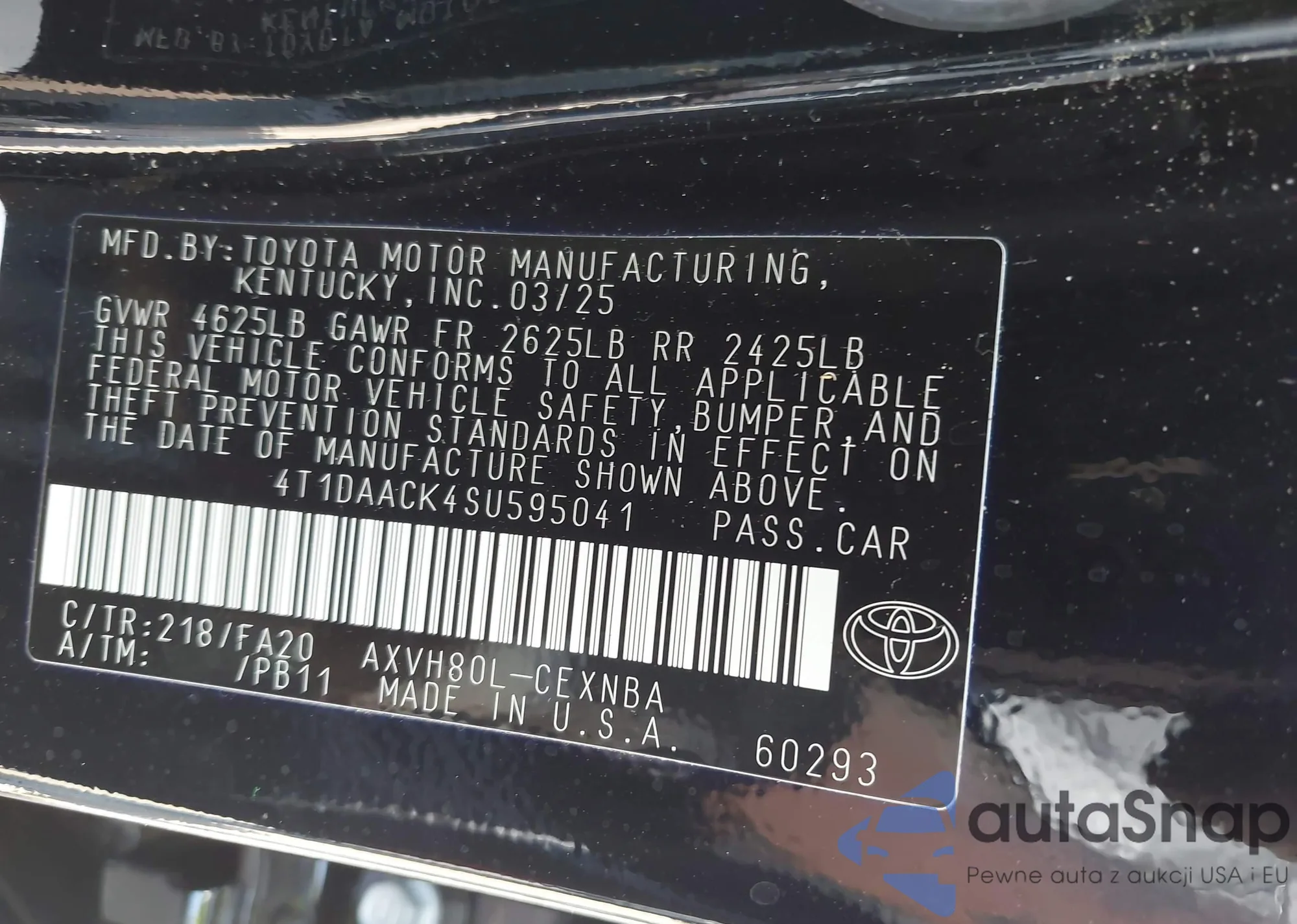 • VIN 4T1DAACK4SU595041