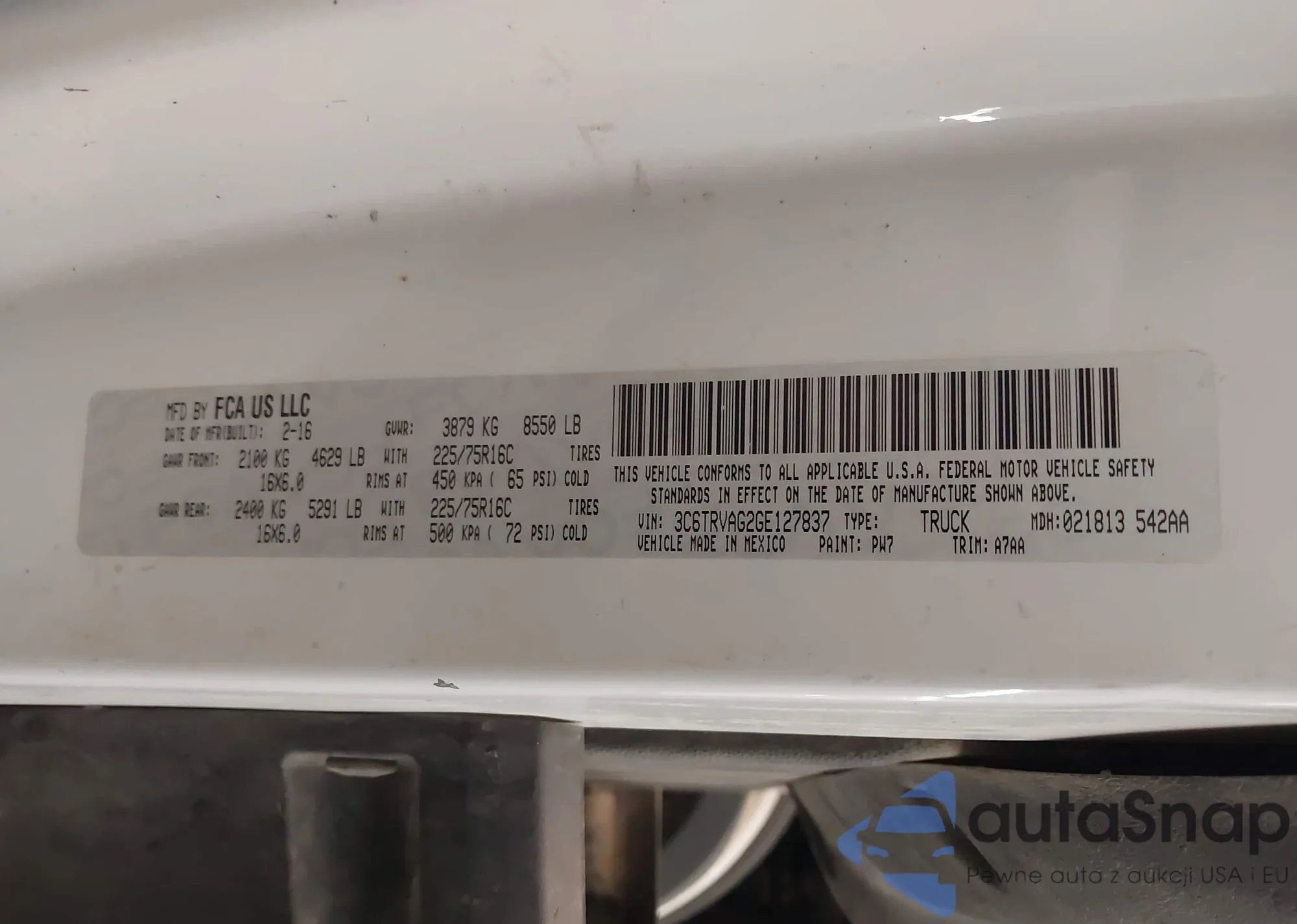 • VIN 3C6TRVAG2GE127837