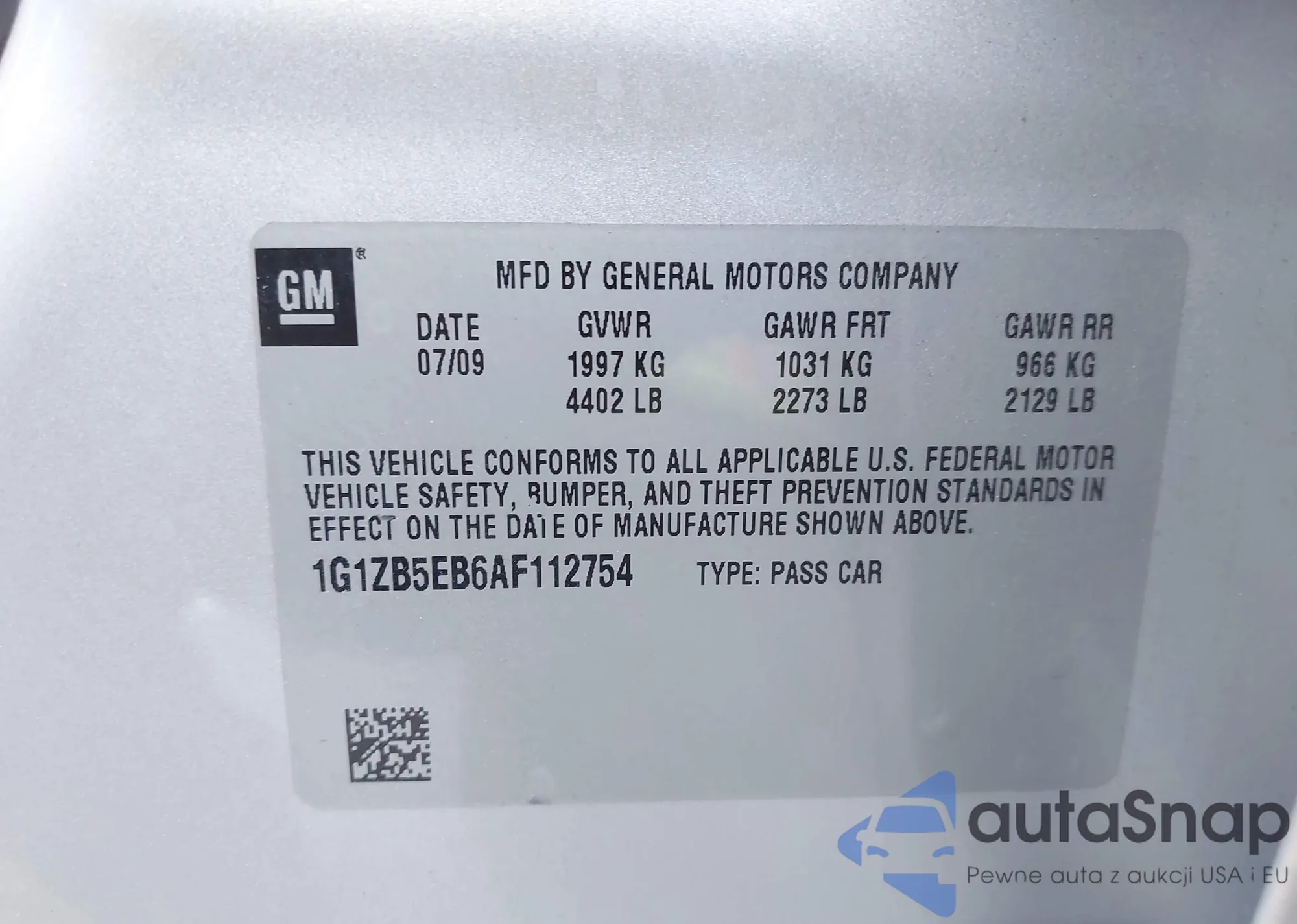 • VIN 1G1ZB5EB6AF112754