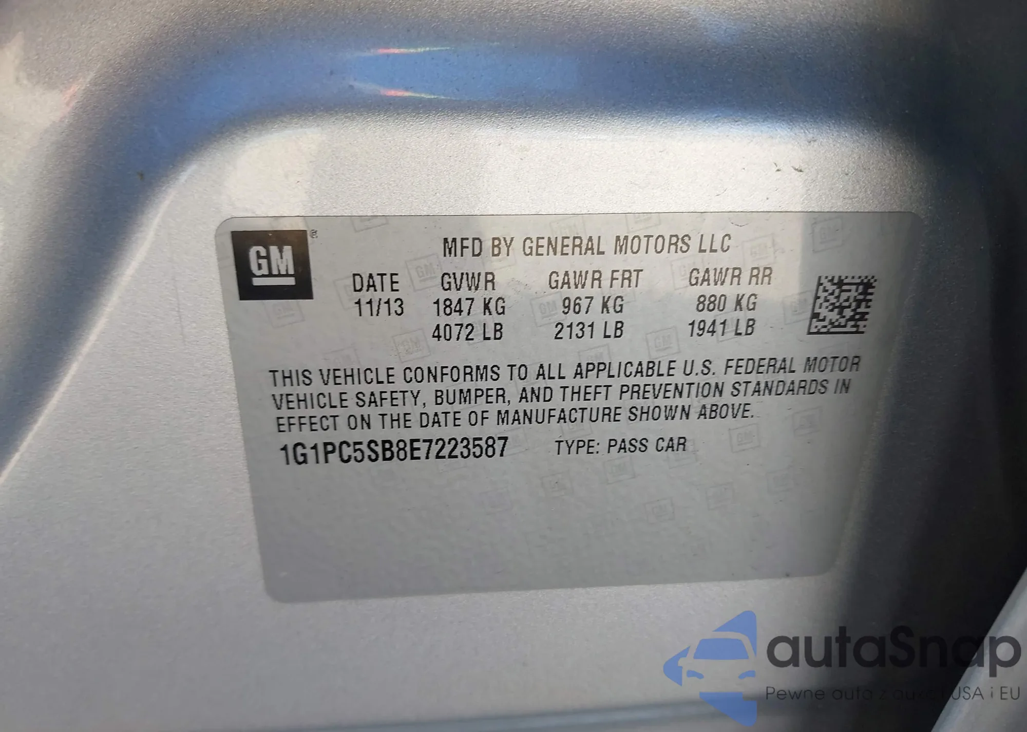 LOT: 43453601 VIN: 1G1PC5SB8E7223587