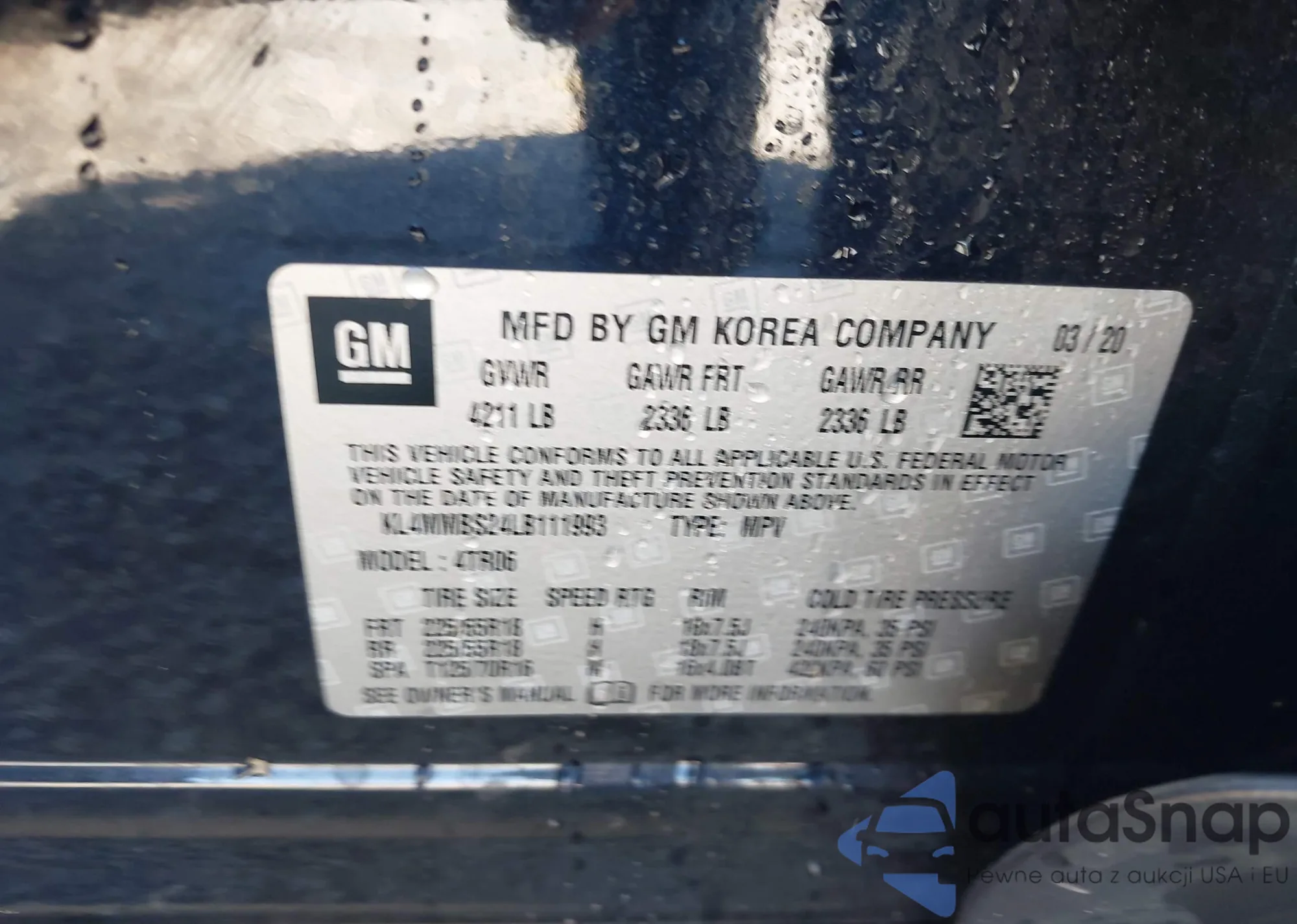 LOT: 43484411 VIN: KL4MMBS24LB111993