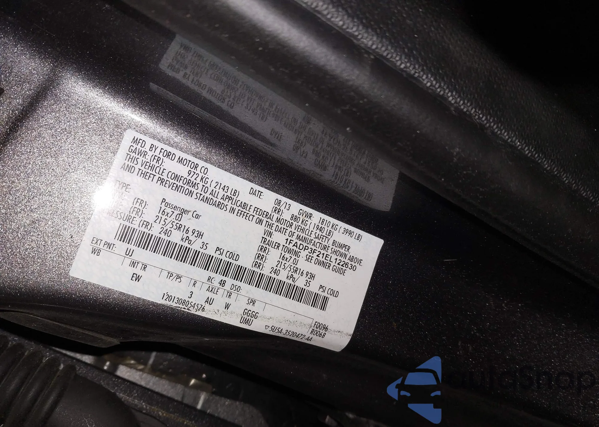 • VIN 1FADP3F21EL122630