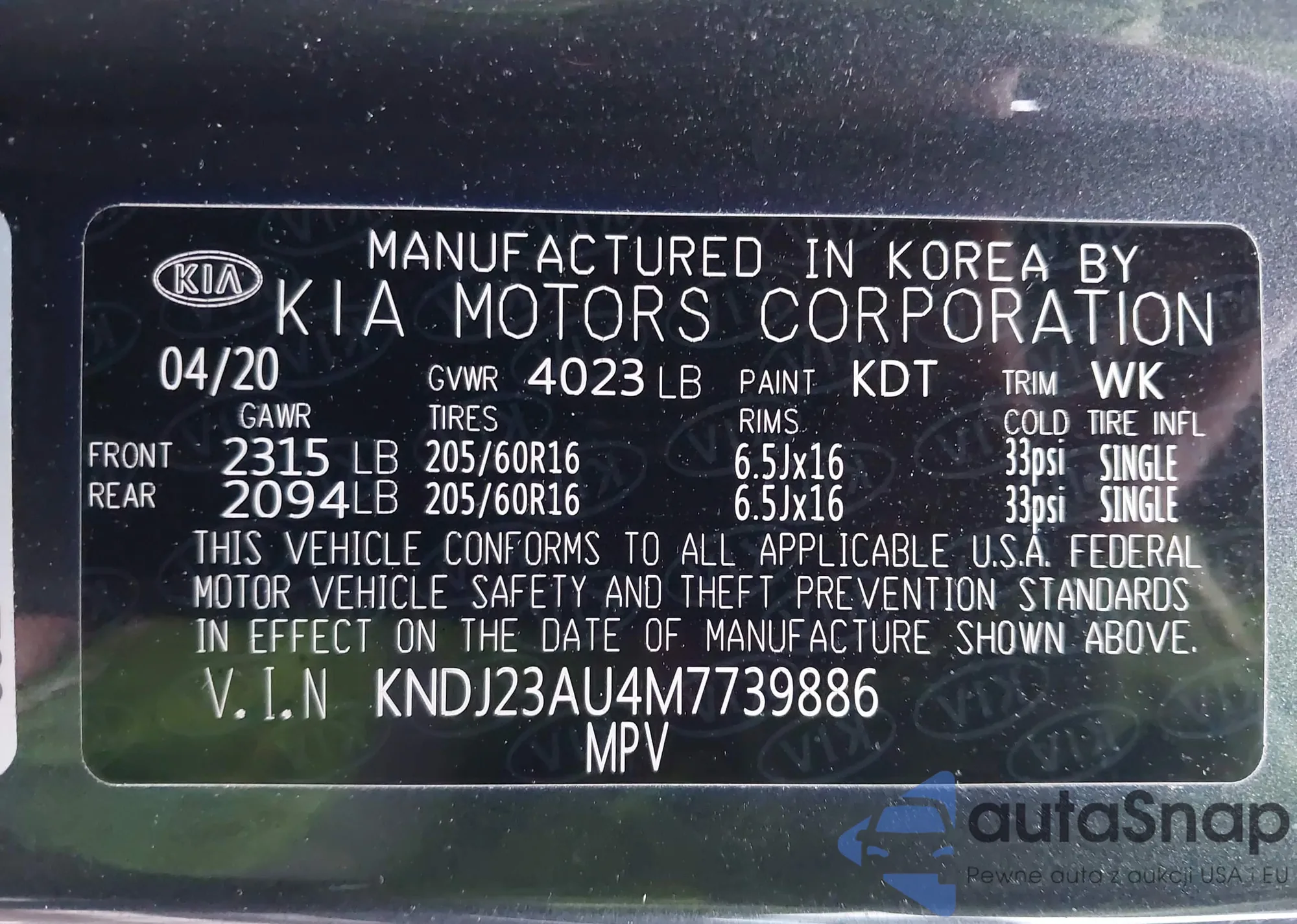 LOT: 44013705 VIN: KNDJ23AU4M7739886